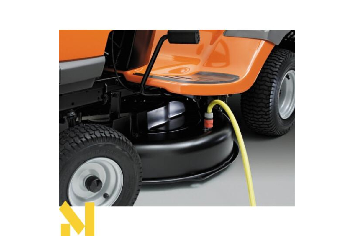 Ріжуча дека має ширину 107 см і спеціальне довговічне покриття. Вона обладнана двома ножами (включаються механічно), 4 антіскальпірующімі колесами і штуцером для приєднання шланга і очищення внутрішньої поверхні потоком води. Висота косіння трави - 38-102 мм. Діаметр нескашіваемого кола - 95 см.