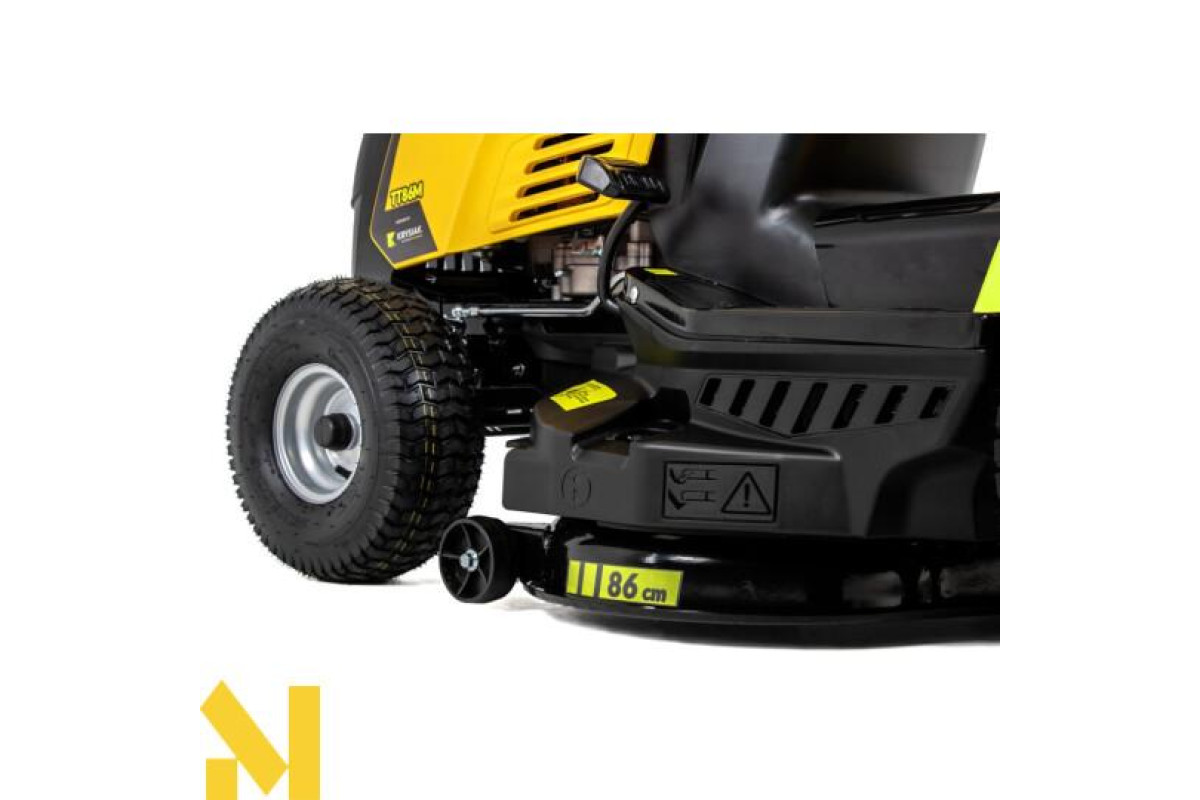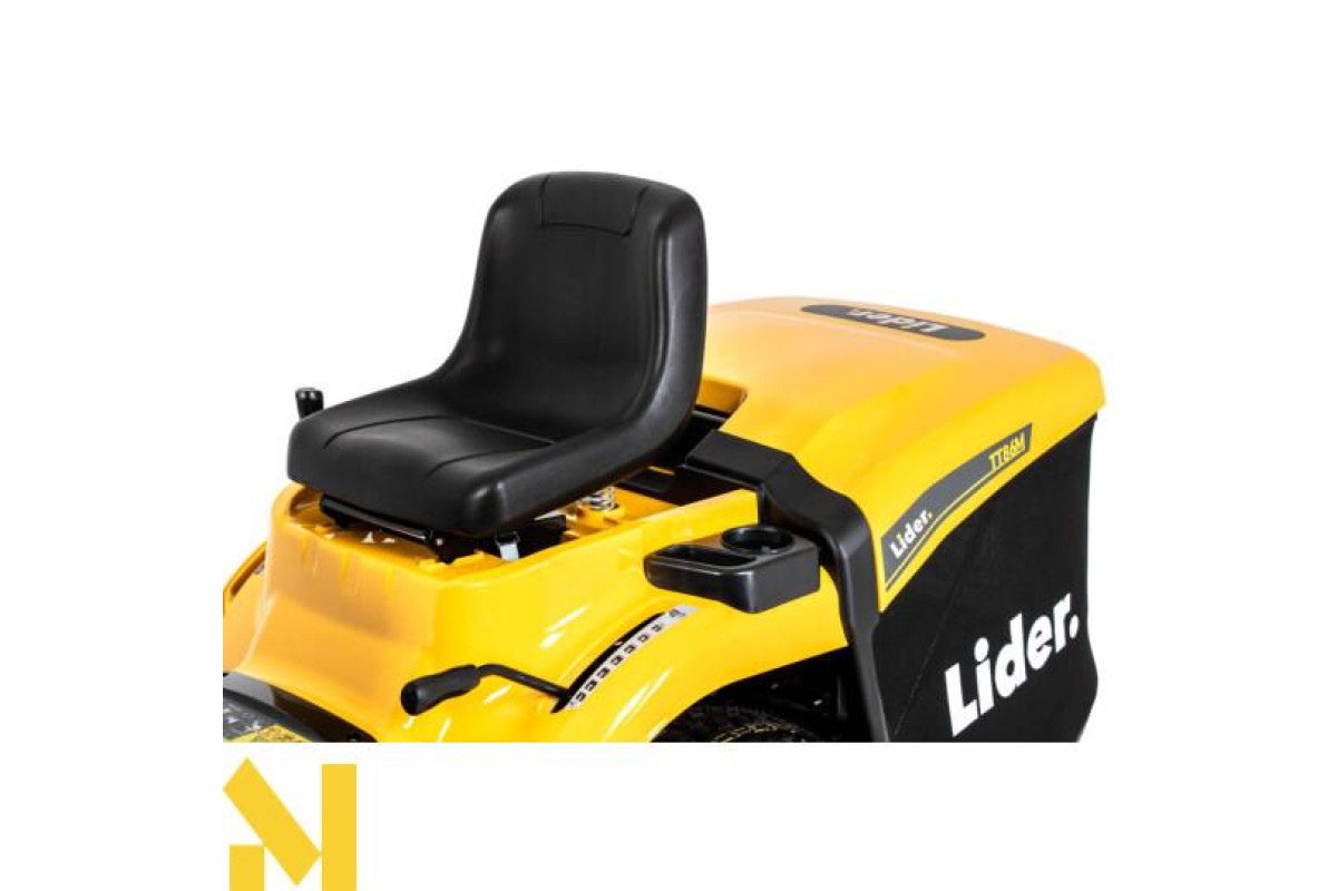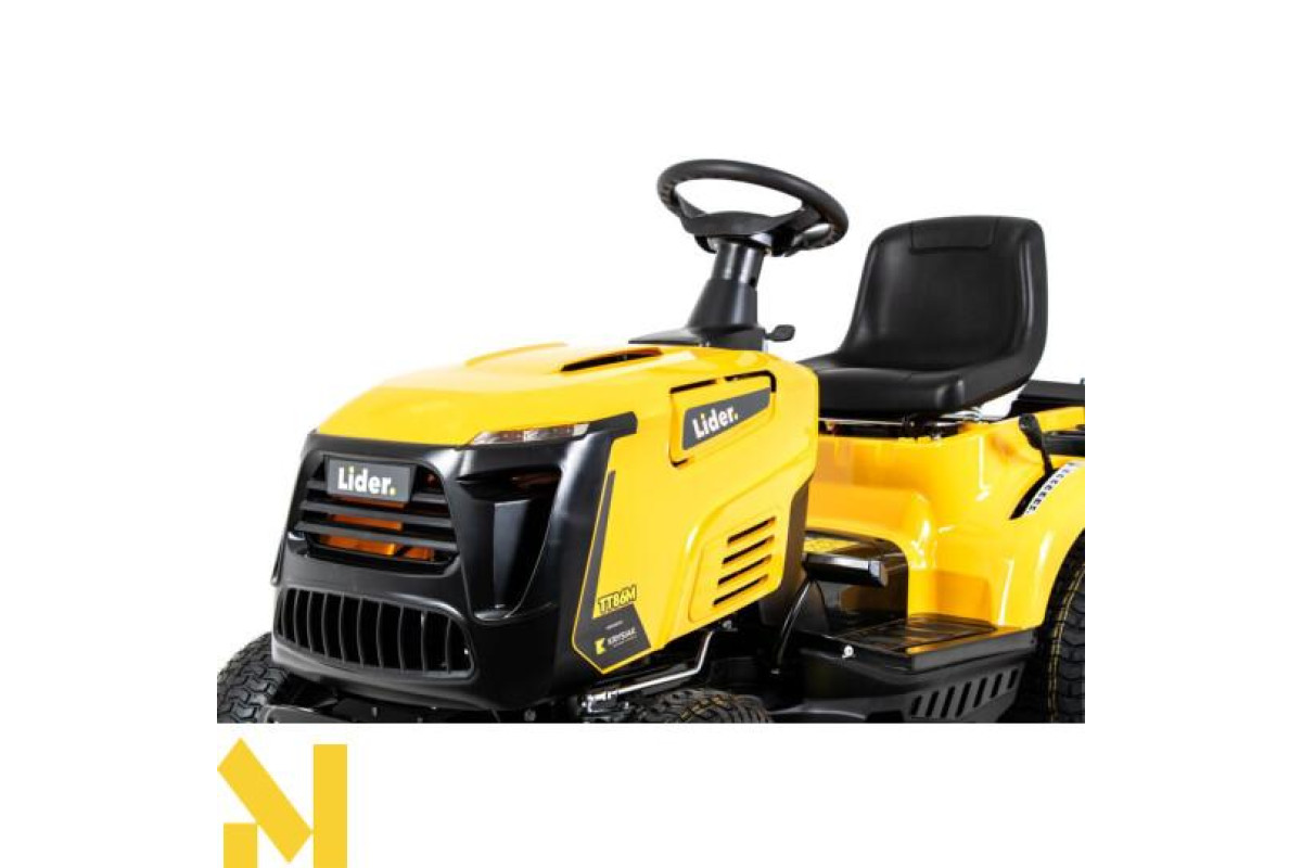 Завдяки 7-ступінчастому регулюванню висоти зрізу від 30 до 90 мм користувач може налаштувати висоту зрізу відповідно до індивідуальних потреб та уподобань. Великий 245-літровий бункер дозволяє косити довше без необхідності його спорожнення, а звуковий сигнал сповіщає користувача про необхідність спорожнення бункера. Трактор оснащений електромагнітною системою зачеплення ножів для забезпечення надійності та безпеки під час роботи. З'єднання для очищення деки косарки полегшує очищення та обслуговування машини. Додаткові функції, такі як світлодіодне освітлення, регульовані опорні колеса, бампер, сидіння з вимикачем безпеки та опціональна задня навіска роблять садовий трактор Lider TT86M 86 см ідеальною машиною для вимогливих користувачів.