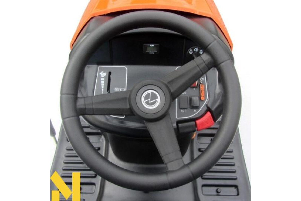 Швидкість регулюється за допомогою подвійної педалі, що діє безпосередньо на гідростатичний привід. Завдяки такому рішенню ви можете змінювати напрямок руху і контролювати швидкість руху також під час спорожнення кошика.