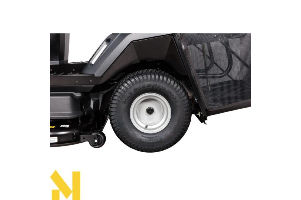 Догляд за ріжучим лезом простий і швидкий. Широкі колеса мають спеціально розроблений протектор, який не пошкоджує траву, по якій рухається мінітрактор.