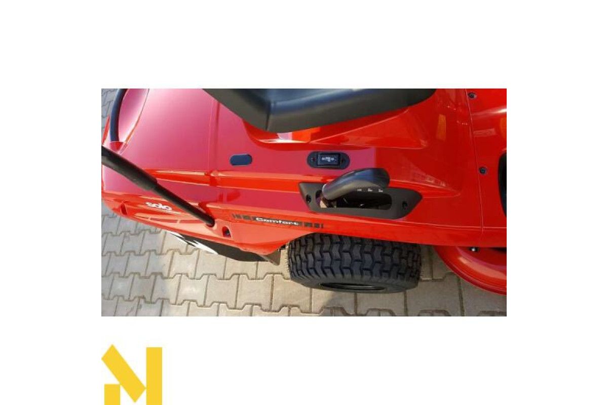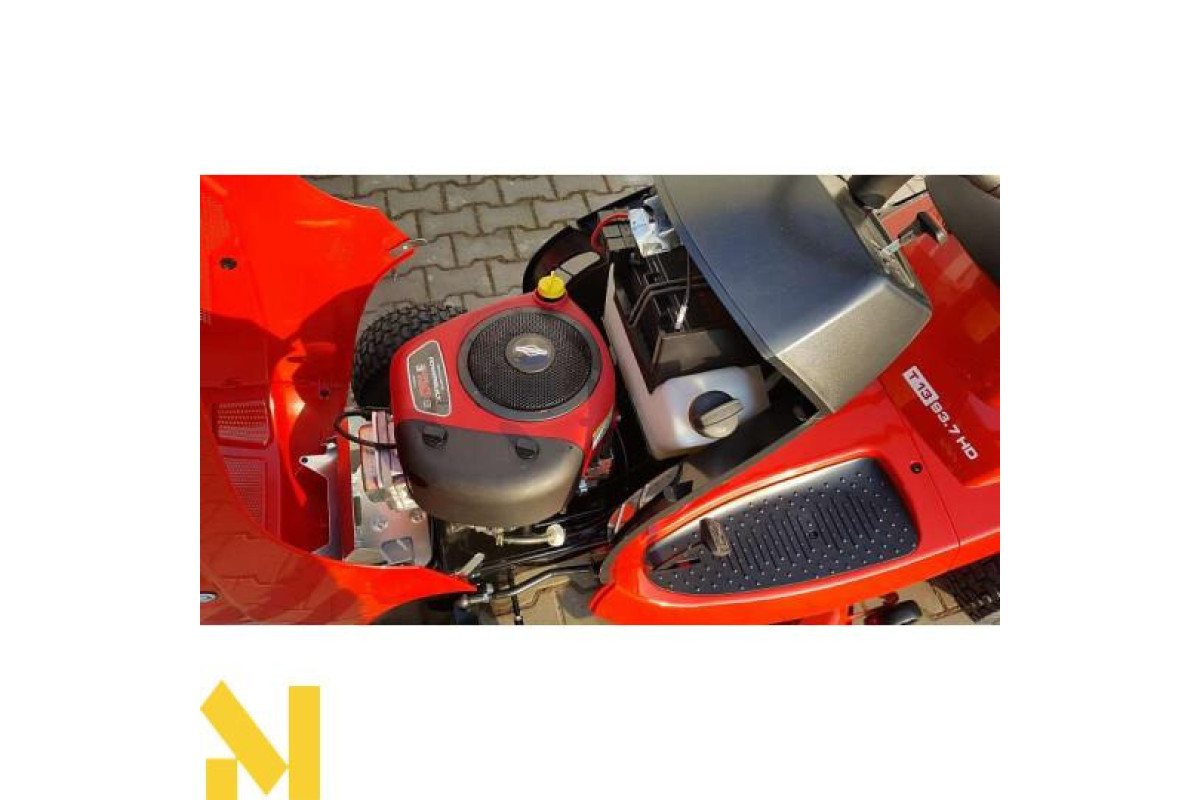 Модель для початківців, газонний трактор з товарної групи "Comfort", володіє шириною різання 93 см, і призначений для особливо ефективного і швидкого косіння трави. Газонний трактор "T13-93.7 HD Comfort" приводиться в рух від двигуна Briggs & Stratton потужністю 6,3 кВт. Висоту різу можна відрегулювати спеціальною ручкою в 6 ступенів і в діапазоні від 30 мм до 90 мм. Довговічна косильна дека з сталевого листа оснащена двома ножами для чистого різу трави, і її можна легко демонтувати за пару простих операцій. Крім того взимку на передню частину газонного трактора "T13-93.7 HD Comfort" для зимового режиму можна без проблем встановити снігоприбиральний щит. Великі шини до 18 дюймів гарантують хороше зчеплення з грунтом, і швидке просування вперед по будь-якій місцевості. За допомогою спеціальної телескопічної рукоятки, прямо з регульованого сидіння водія можна дуже просто спустошити велику коробку травозбірника ємністю 220 літрів. Про необхідність спустошення коробки вам нагадає акустичний сигнал. Іншою перевагою для додаткового комфорту є зручне рульове колесо і оглядовість органів управління.