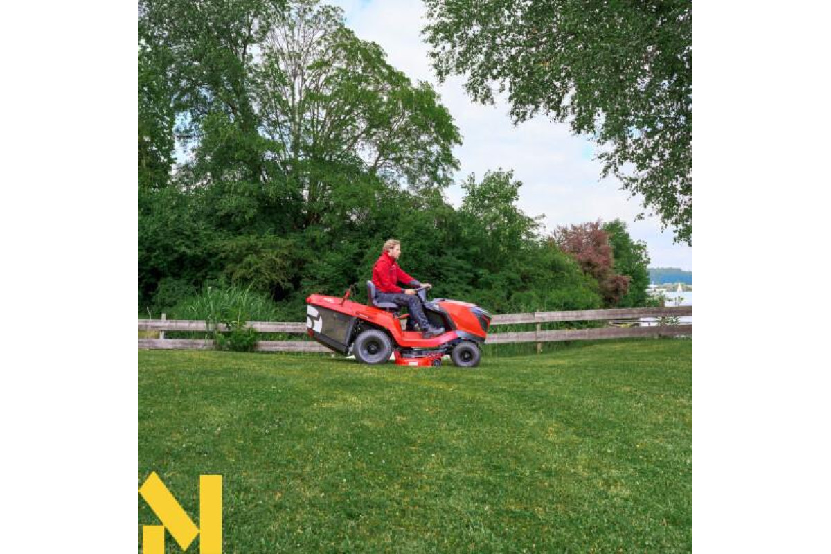 Доглядати за великими газонами також одне задоволення завдяки великим 20-дюймовим заднім колесам, які плавно поглинають нерівності. Педалі переднього та заднього ходу ергономічно розташовані поруч одна з одною для інтуїтивно зрозумілого керування. Завдяки зовнішньому паливному горловині садовий трактор легко заправляється робочими рідинами. Низька сходинка та великий простір для ніг полегшують посадку та роботу. Зручне сидіння можна індивідуально відрегулювати в декількох положеннях.