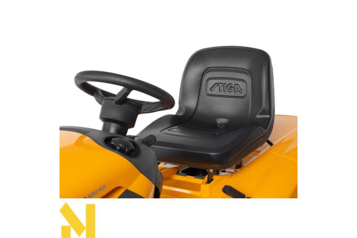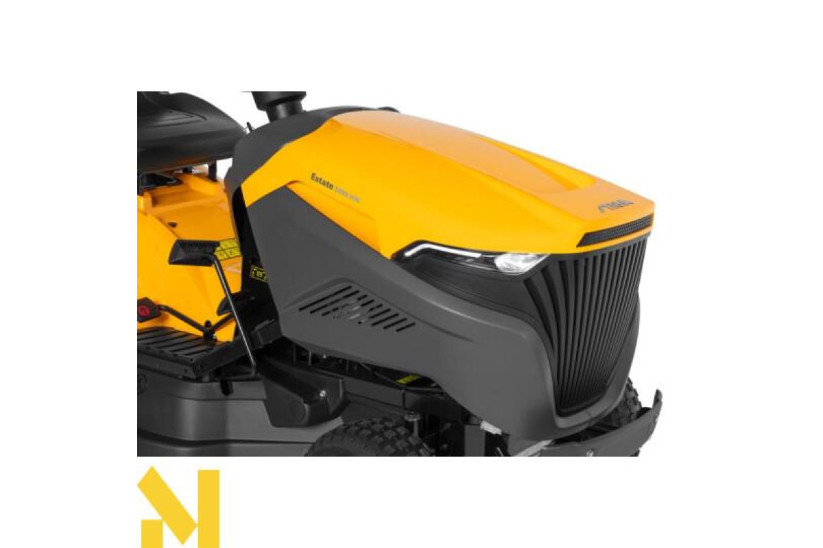 Насолоджуйтесь універсальністю і швидко косіть велику площу, використовуючи потужний і працьовитий садовий трактор STIGA Estate 5092 HW! Новий потужний 4-тактний двигун OHV STIGA об'ємом 586 см3 завдяки двоциліндровій конструкції відрізняється плавною роботою і високим крутним моментом. Двигун працює при низькій температурі, щоб максимально продовжити термін його служби. Він був розроблений для отримання більшої потужності, ніж у конкуруючих двигунів з таким же робочим об'ємом. Ріжуча дека на Estate 5092 HW оснащена двома ножами, які забезпечують збір довгою мокрої трави або відкидання її ззаду, не блокуючи випускний жолоб. Якщо ви регулярно підстригаєте газон, ви можете відрегулювати прикладену заглушку для мульчування і отримати хороший зовнішній вигляд газону, без стрижки і обробити траву вільним органічним добривом. З огляду на ширину стрижки 92 см і місткий травозбірник об'ємом 290 літрів, цей швидкодіючий садовий трактор покриває велику площу газону з вражаючою швидкістю і ефективністю. Комфорт є ключовим фактором для садівників, яким доводиться виконувати трудомістку роботу по сінокосу і буксируванню, тому STIGA оснастила садовий трактор Estate 5092 HW сидінням Comfort, рульовим колесом Premium з м'якою ручкою і електромагнітною муфтою. Зручна панель приладів з шістьма світлодіодами відображає інформацію про всі важливі робочі параметри, а суцільний передній бампер, вбудований в шасі, забезпечує надійну довговічність машини. Гнучкий у використанні завдяки трьом режимам різання, цей універсальний верстат також має семиступінчасте регулювання висоти зрізу в діапазоні 25-80 мм, яку можна використовувати в залежності від переважаючих умов. Крім того, буксировочна штанга STIGA робить садовий трактор цілорічною робочою конячкою завдяки широкому асортименту приладдя. Садовий трактор 5092 HW має гідростатичну трансмісію з функцією Premium, яка дозволяє водієві плавно прискорюватися за допомогою педалі. Це не тільки економить час, оскільки вам не потрібно зупинятися, щоб перемикати передачі вручну, але також оптимізує маневреність, полегшуючи обхід перешкод або елементів ландшафту.