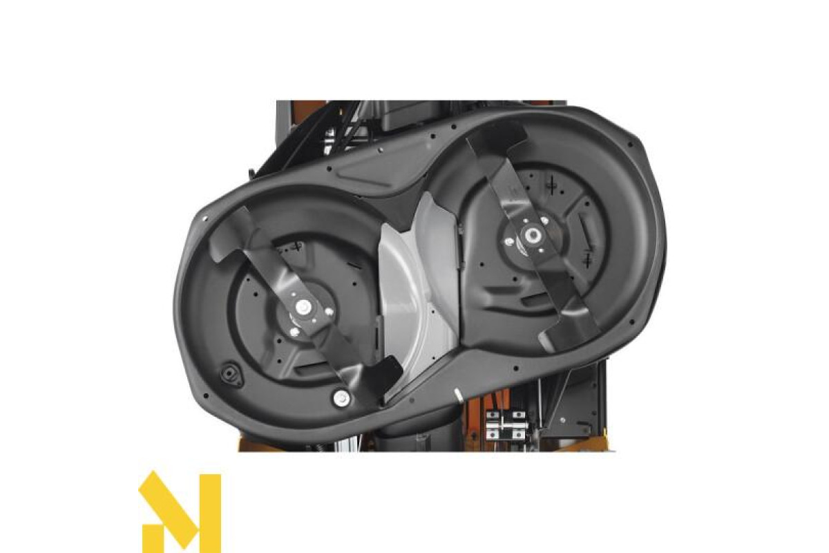 - Великий ріжучий блок довжиною 92 см обладнаний двома ножами, які забезпечують високу ефективність при зборі в бункер, відкиданні зі спини і мульчуванні (включаючи пробку для мульчування).