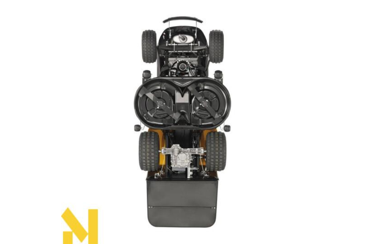 Завдяки надширокої ріжучої деці 102 см і здвоєним синхронізованим лез, які оптимізують потік повітря під декою, ця машина швидко покриває значну площу і здатна збирати довгі вологі стружкі.задніцу без блокування розвантажувального жолоба.