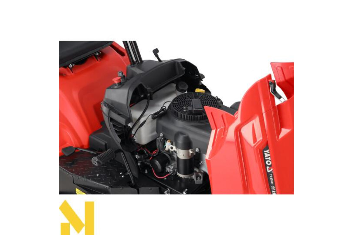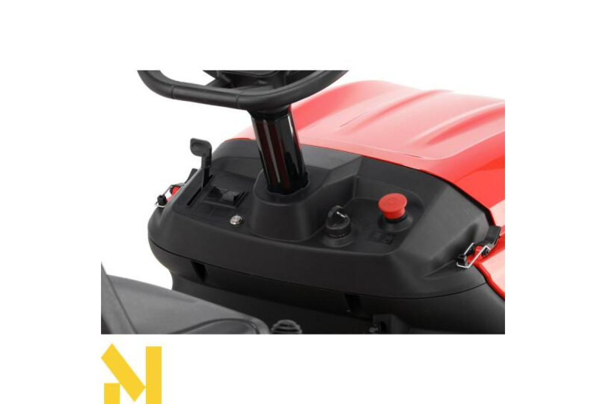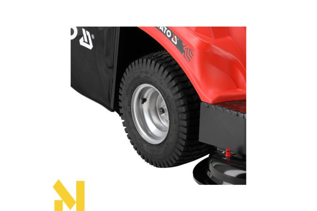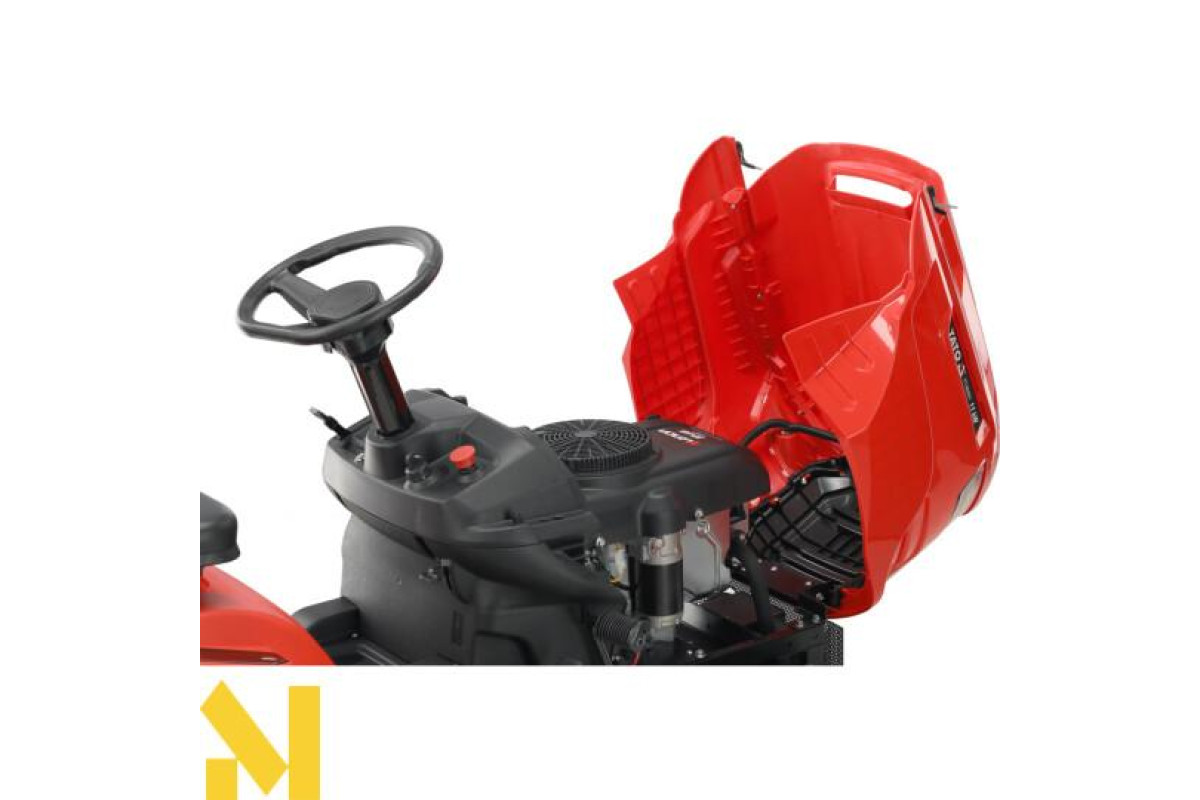 Трактор оснащений автоматичною коробкою передач, що забезпечує надзвичайно легке та комфортне керування. Він має електричний стартер та місткий 220-літровий збірник, що значно полегшує збір трави з великих площ. Різальний агрегат запускається та зупиняється натисканням перемикача, розташованого під кермовим колесом.