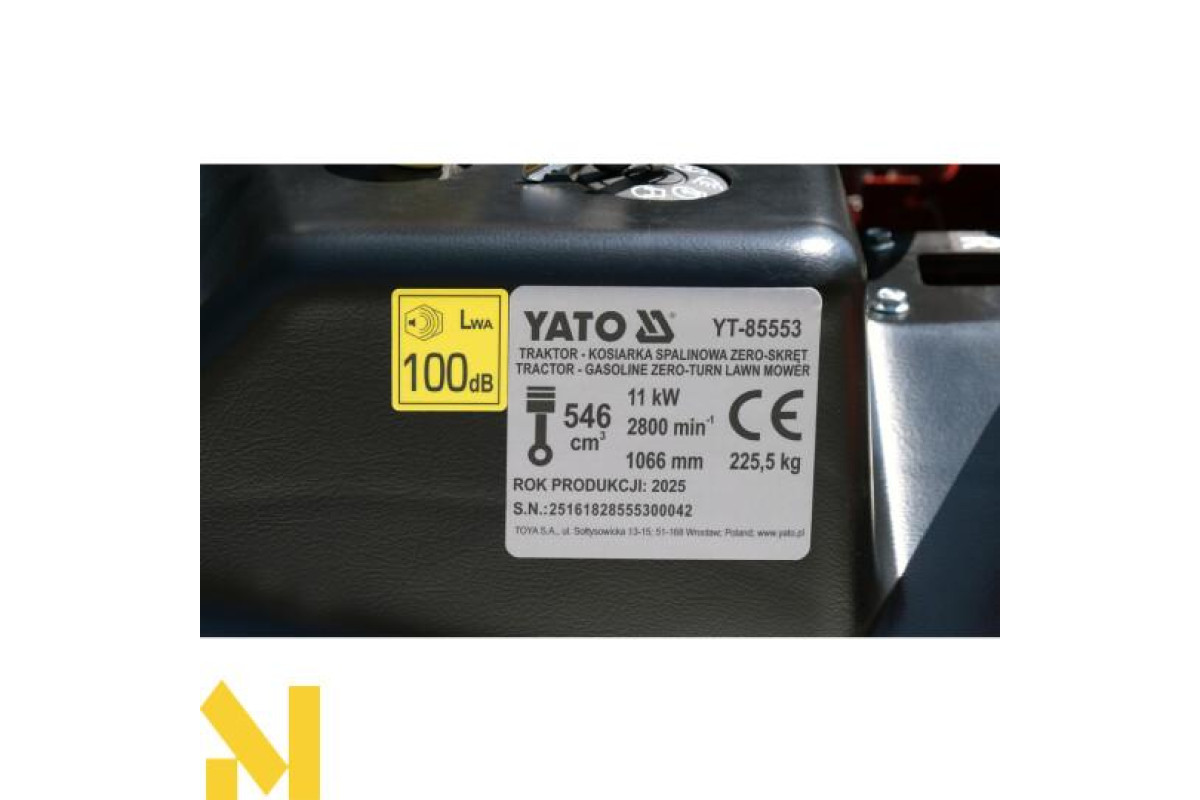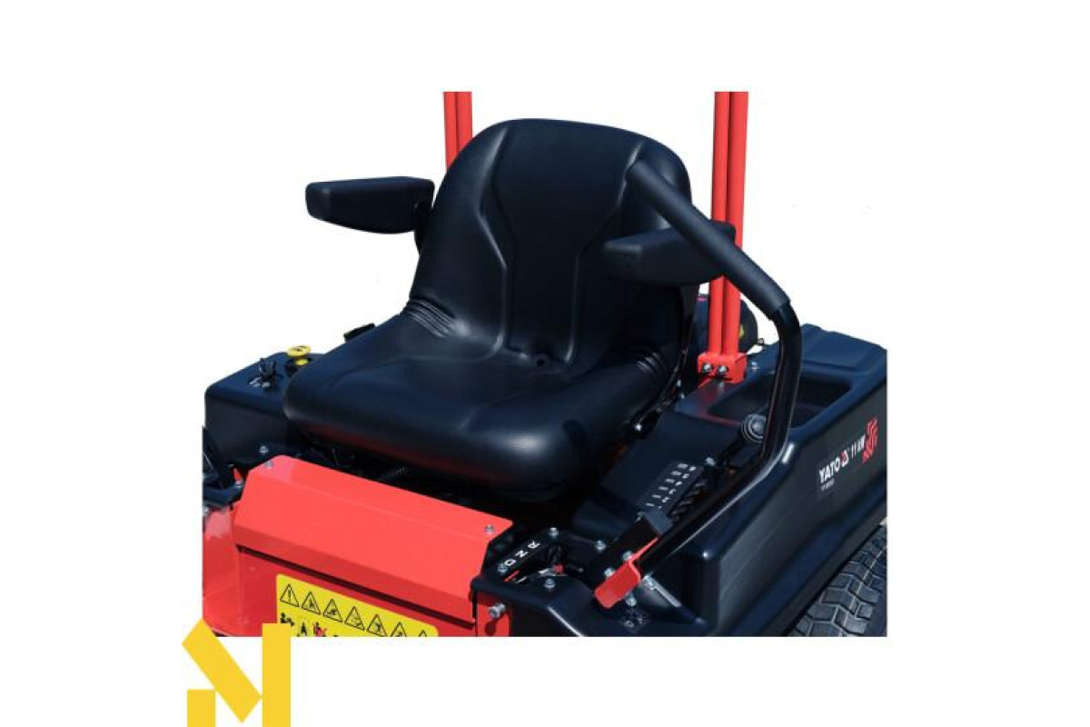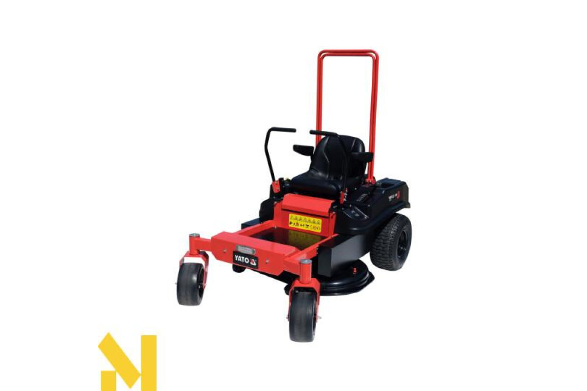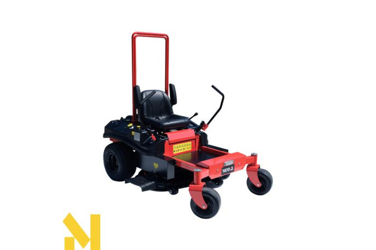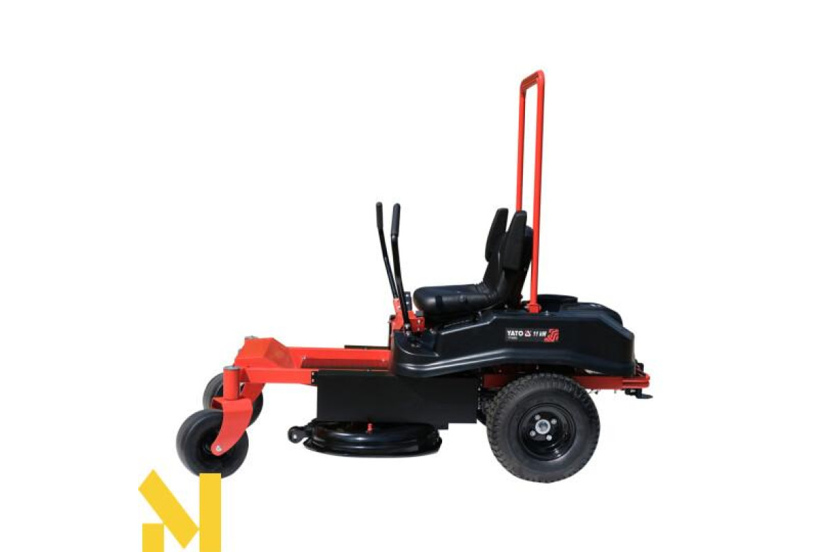 Садовий трактор бензиновий YATO YT-85553 - це професійне обладнання, яке забезпечує максимальну маневреність і точність маневрування завдяки нульовому радіусу розвороту. Вона ідеально підходить як для великих відкритих просторів, так і для складних садів з численними перешкодами.