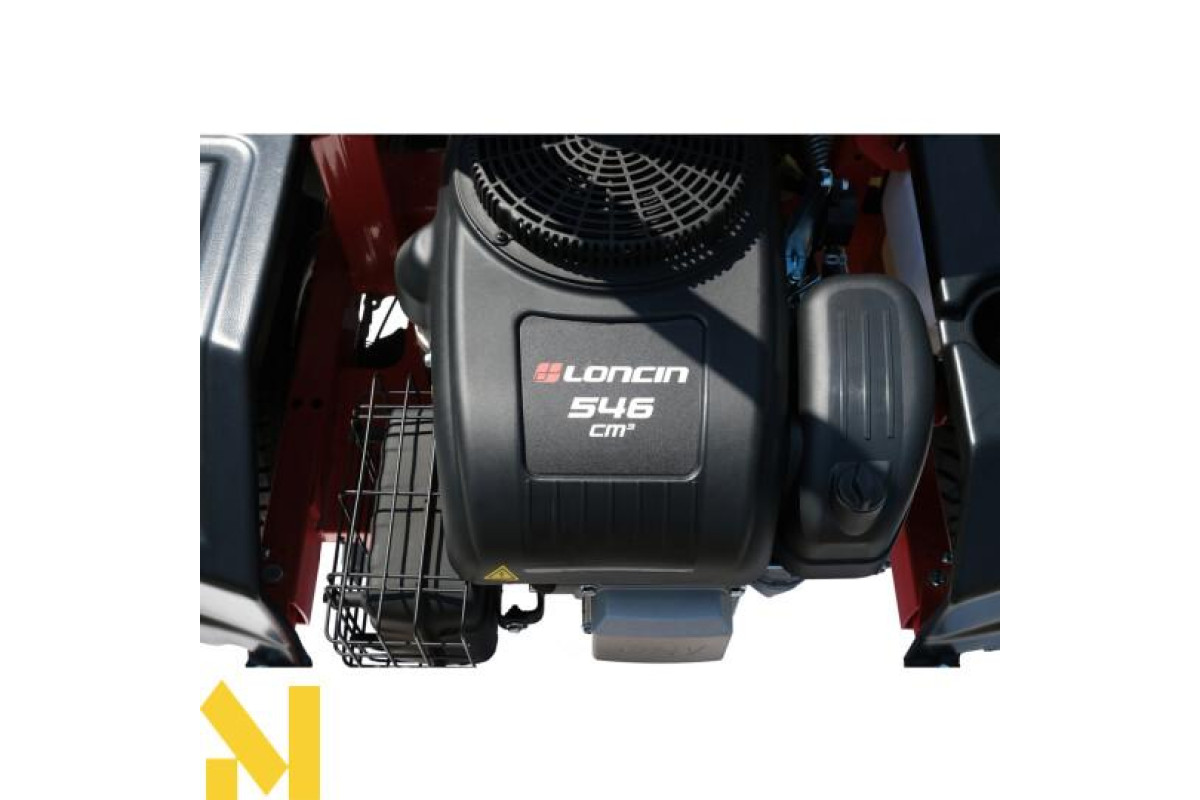 Оснащений потужним двигуном Loncin LC1P91F-1 об'ємом 546 см³, трактор гарантує високу продуктивність і надійність. Гідравлічна трансмісія забезпечує плавний хід, а електричний запуск гарантує безпроблемний запуск машини. Максимальна ширина зрізу 1066 мм і 6-ступінчасте регулювання висоти зрізу (40-120 мм) дозволяють точно пристосуватися до умов газону.