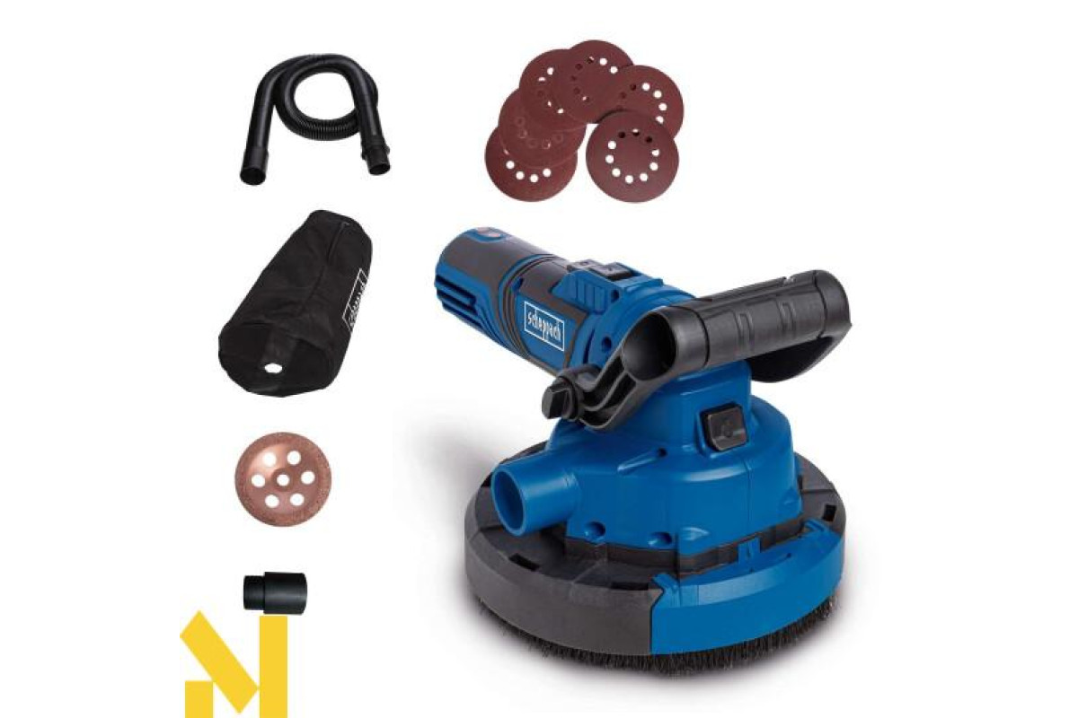 Універсальна система обробки стін, підлоги та стелі 3-в-1 BFR1200 від Scheppach може використовуватися для широкого спектру застосувань, включаючи шліфування гіпсокартону та дерева, а також видалення залишків клею або шпаклівки. Ця практична шліфувальна машина поєднує три функції в одному інструменті та може використовуватися як шліфувальна машина для стін, стелі або підлоги. Потужний двигун потужністю 1050 Вт зі змінною швидкістю 410–1900 об/хв дозволяє виконувати роботу в залежності від конкретного застосування. Знімна передня кришка дозволяє виконувати роботу особливо близько до країв, наприклад, під час шліфування переходів між стінами та підлогою.