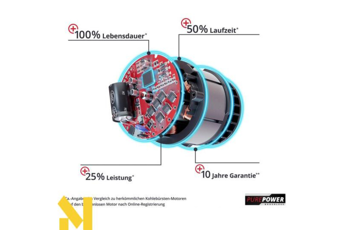 Безщітковий двигун PurePOWER Brushless - велика потужність і тривалий час роботи;