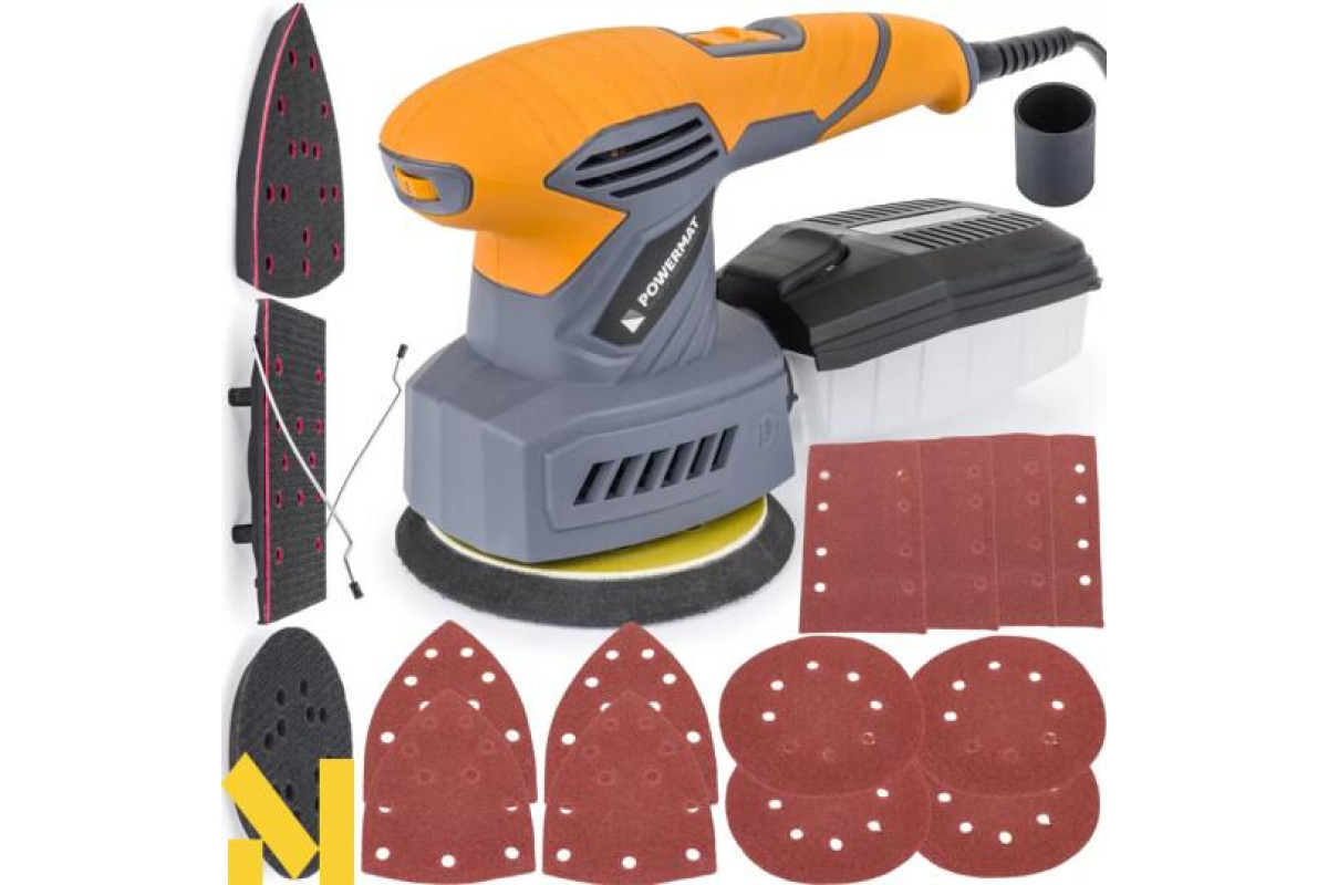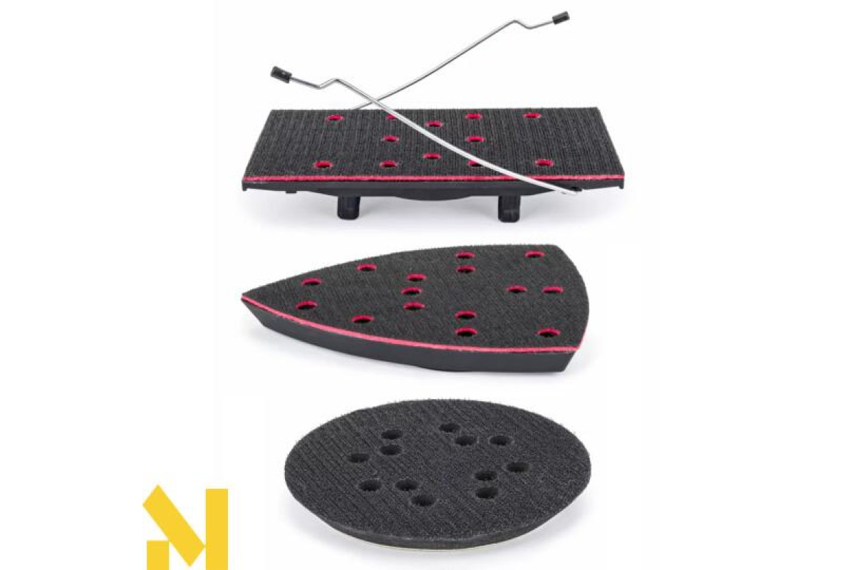 Для багатофункціонального шліфування - ексцентрикового та орбітального шліфування, шліфувальна машина може бути оснащена 3 різними шліфувальними дисками (орбітальним - для шліфування плоских поверхонь; трикутним - для шліфування нерівних поверхонь; прямокутним - для шліфування кутів і країв).