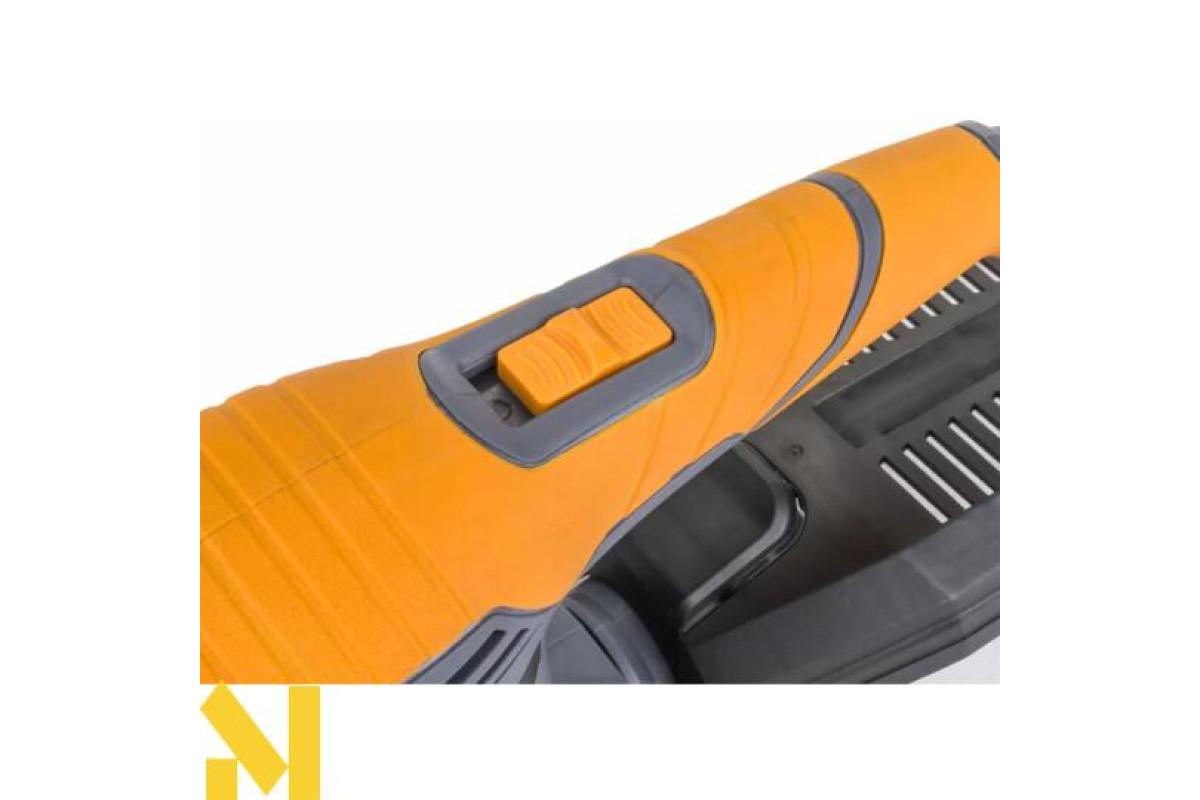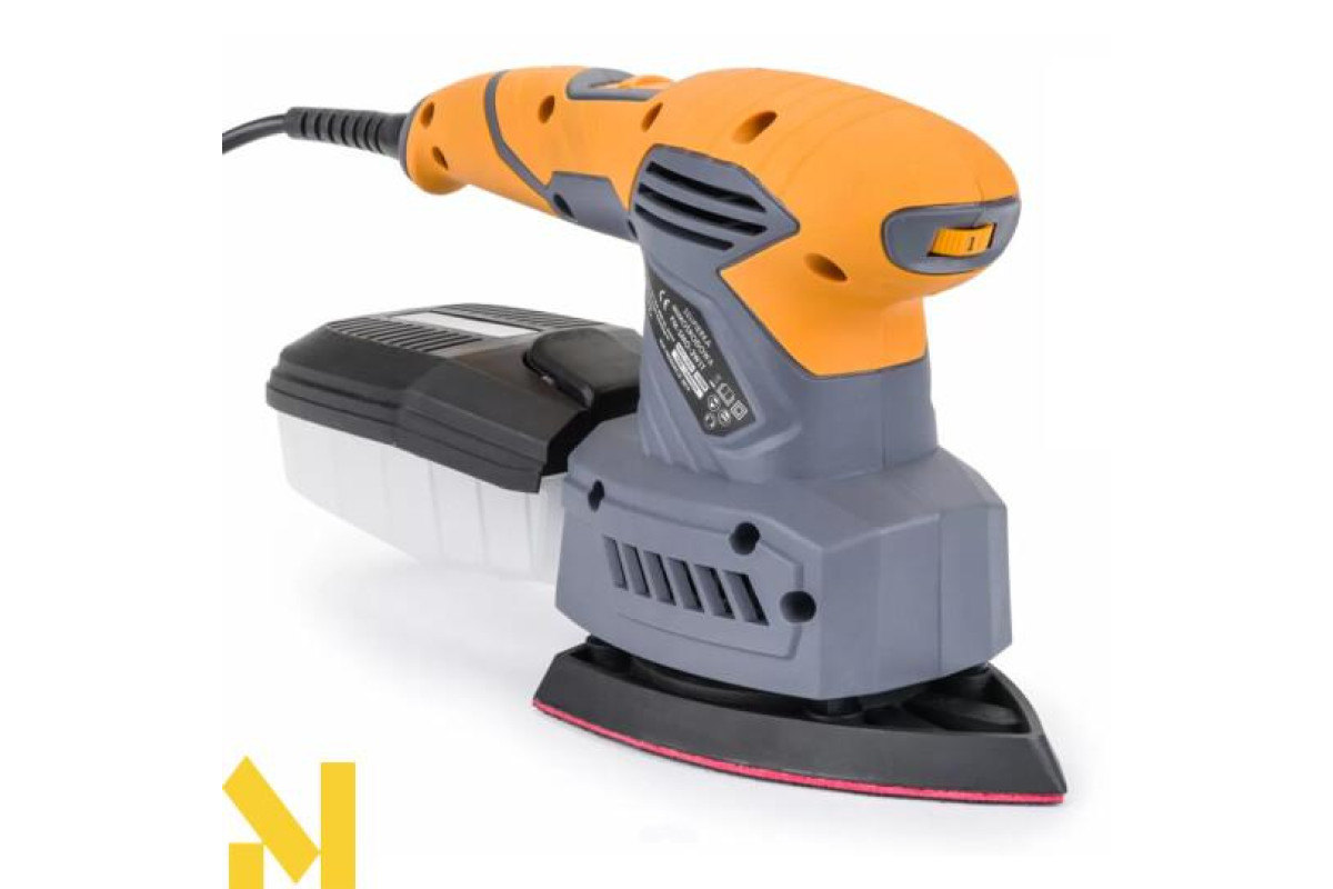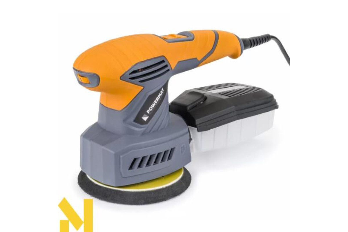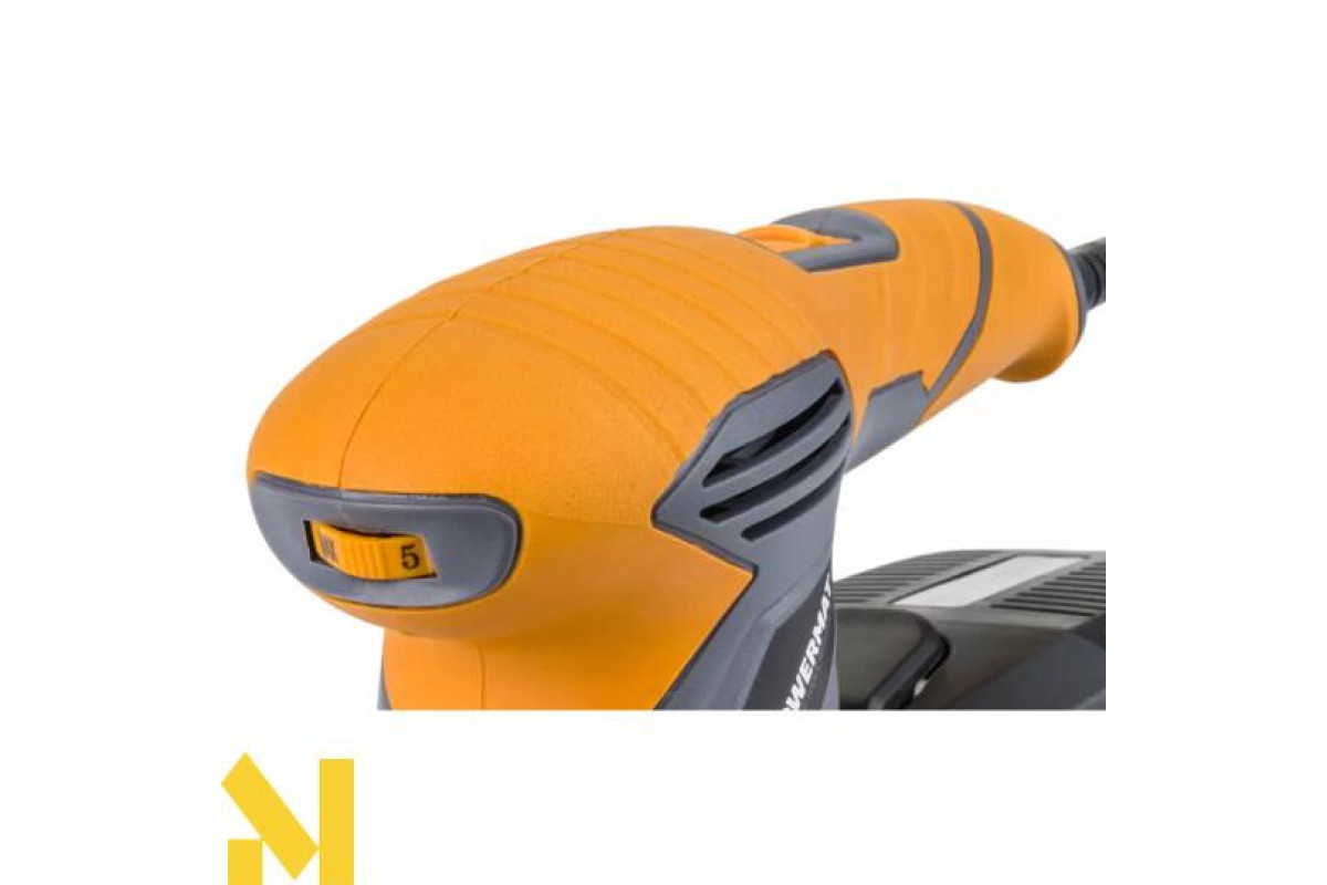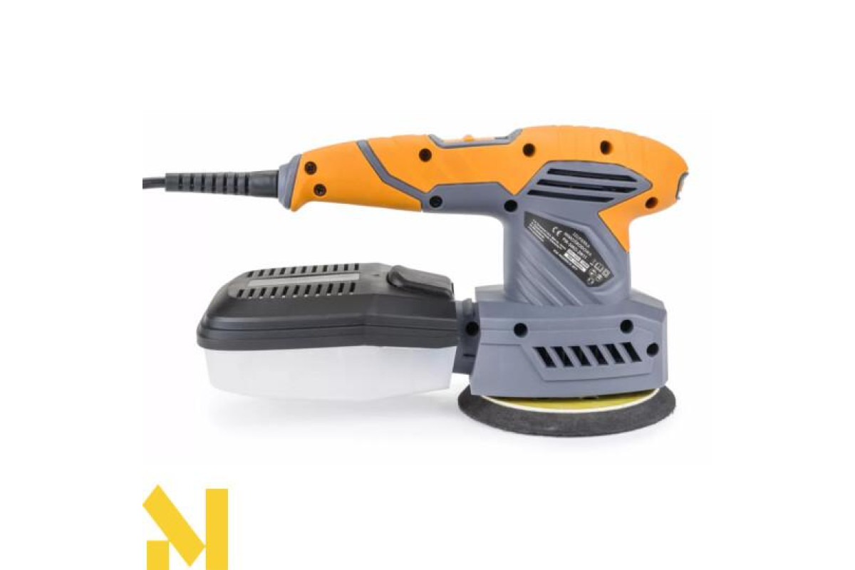Для максимального комфорту та безпеки використання шліфувальна машина оснащена спеціальною нековзною ручкою з гумовим покриттям. Ексцентриковий рух забезпечує рівномірне шліфування заготовки, без борозен і нерівностей.