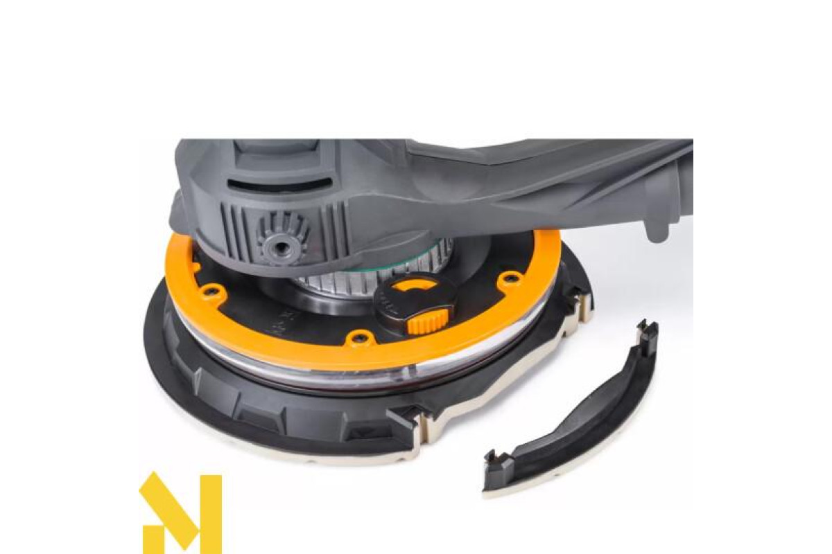 Знімна частина захисного кожуха дозволяє зручно шліфувати кути (наприклад, місця з'єднання стін і стелі).