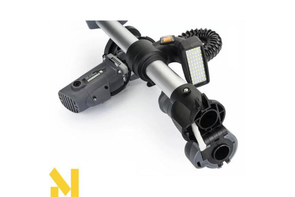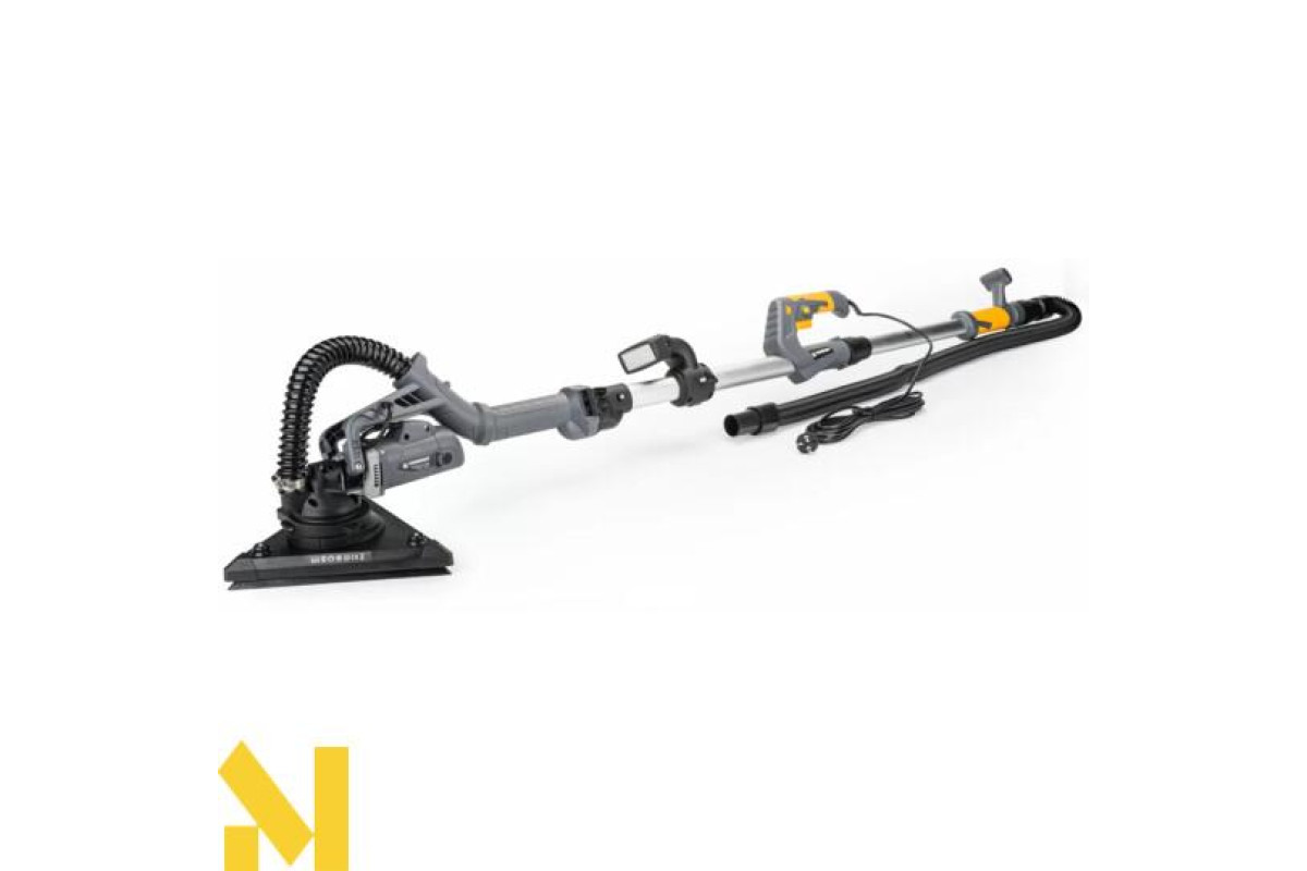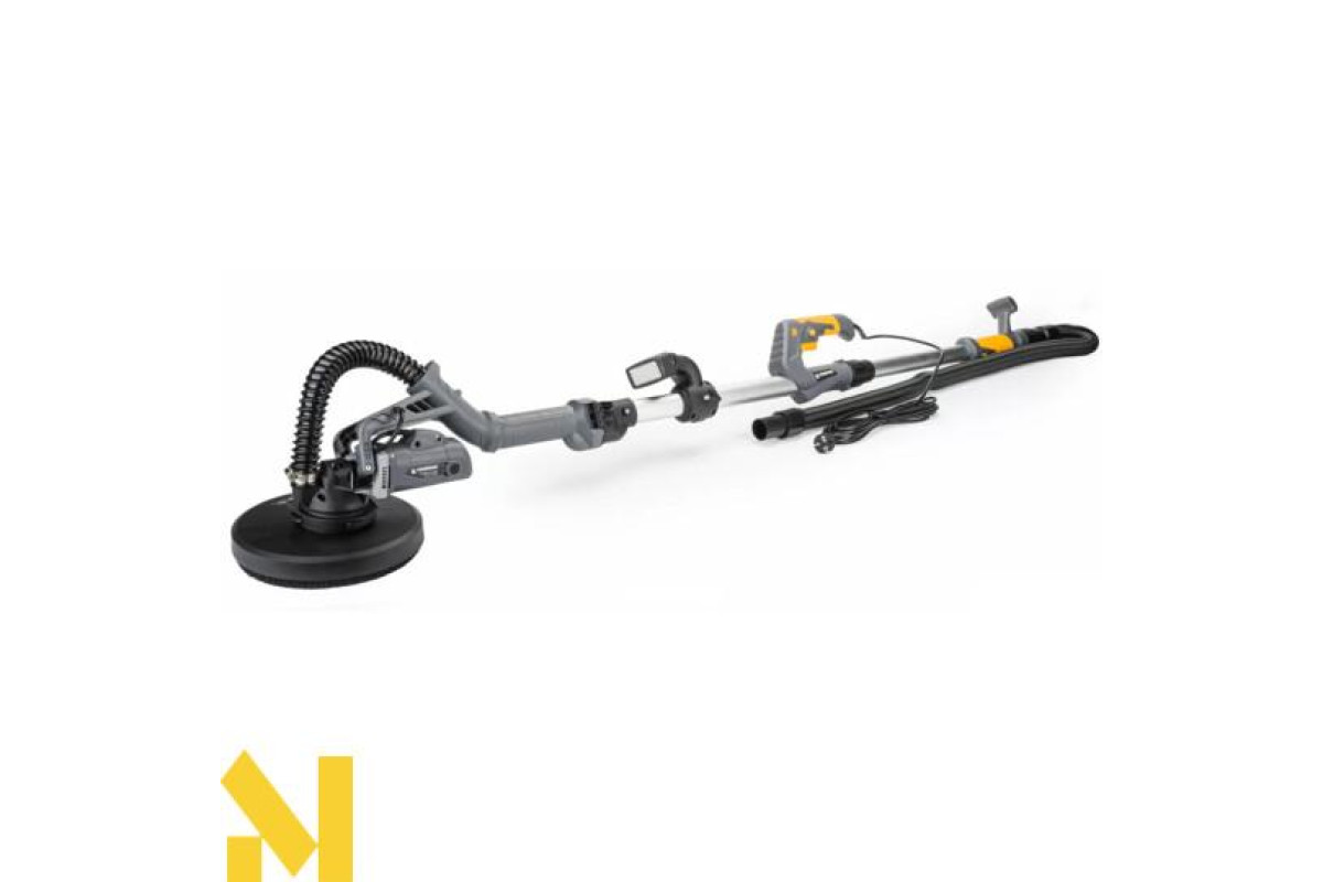 Безпильна шарнірна шліфувальна машина типу ŻYRAFA від POWERMAT модель PM-DG-1450L. Пристрій ідеально підходить для шліфування гіпсокартону на стінах, стелях, а також на більш високих поверхнях.