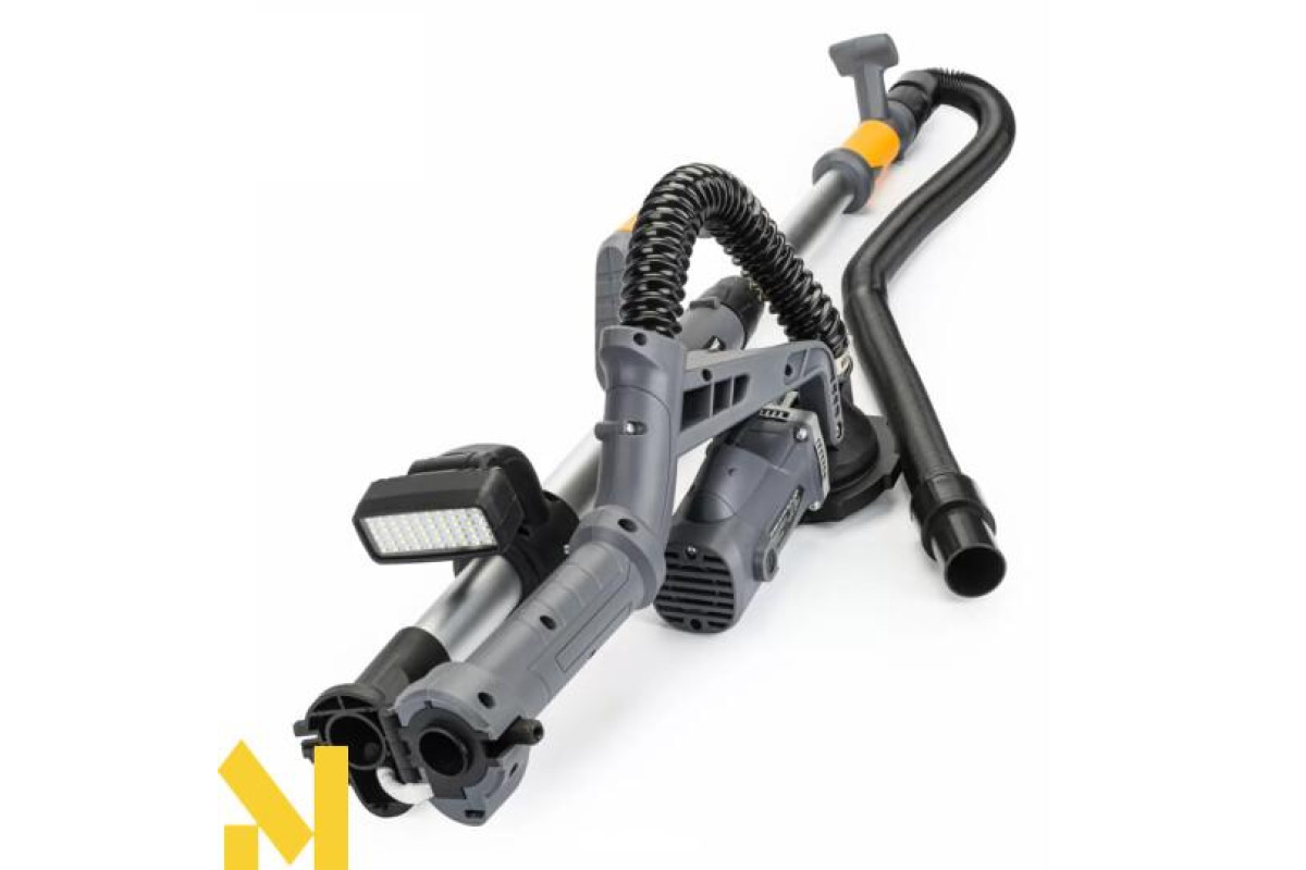 Шліфувальна машина має функцію висувної ручки, завдяки чому ви можете легко збільшити робочий діапазон пристрою і дістатися до найвіддаленіших кутів стіни. У розкладеному стані довжина шліфувальної машини становить 174 см, тому ви можете легко шліфувати поверхню стелі, коли пружина піднімає основу у вертикальне положення. У складеному стані довжина шліфувальної машини становить 67 см, що полегшує її транспортування.