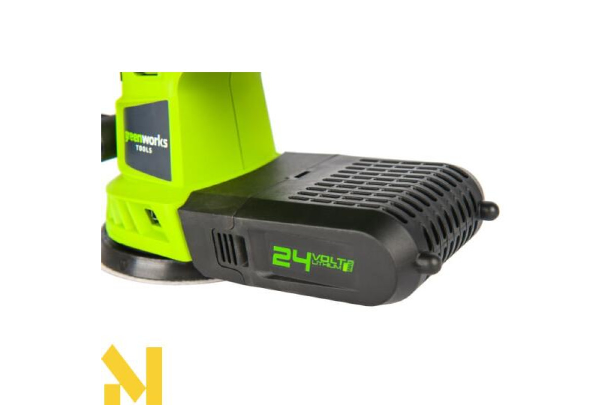 Шліфмашинка акумуляторна ексцентрикова Greenworks G24ROS ідеально підійде для різного типу шліфування (грубого, тонкого, проміжного), а також для полірування автомобіля. Електроінструмент обладнаний пилозбірником. Є можливість регулювання обертів. Завдяки живленню від акумулятора 24 В, сумісного з іншими пристроями лінійки 24V G-24, ця модель забезпечує досить тривалий час автономної роботи.