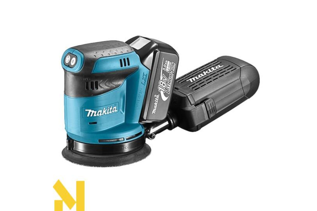 Акумуляторна ексцентрикова шліфмашина Makita BBO180RFE обладнана продуктивним 18 В електромотором. Він живиться від літієво-іонних акумуляторів, ємністю 3 А / г. Частота обертів при сухому ході становить 11000 за хвилину. Такі показники сприяють хорошій ефективності обробки. Враховуючи, що при цьому діаметр ексцентриситету дорівнює 2,8мм, поверхня виходить ідеально гладкою, без задирок і подряпин.