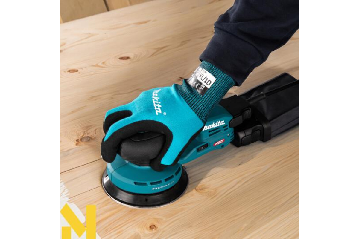 Шліфмашина ексцентрикова Makita BO003CGZ з безщітковим двигуном. Відмінна маневреність, невелика вага і загальна довжина пристрою завдяки відокремленню порту акумулятора від корпусу інструменту і можливості його кріплення, наприклад, на поясі користувача. Технологія XPT означає підвищену стійкість до пилу та вологи. Функція AWS дозволяє бездротово з'єднати пилосос і електроінструмент через Bluetooth.
