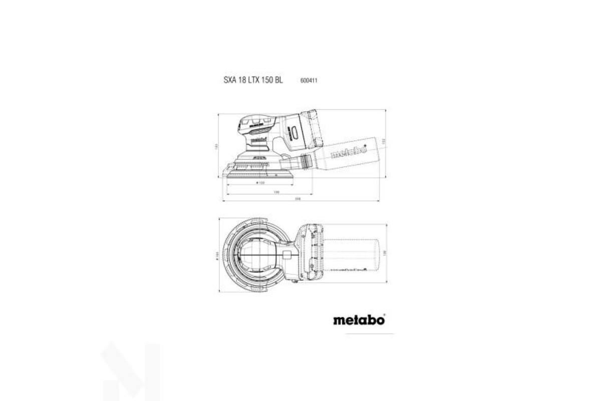 Каркас акумуляторної ексцентрикової шліфувальної машини Metabo SXA 18 LTX 150 BL MetaBox - це комплектація в яку не входять акумуляторні блоки й зарядний пристрій, але поставляється у пластиковому боксі MetaBox 215.