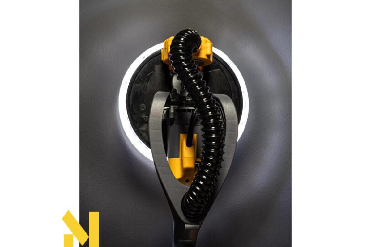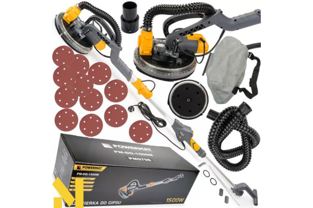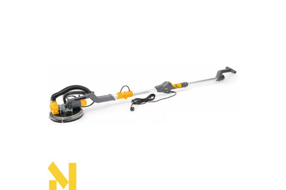 Шарнірна безпильна шліфувальна машина типу ŻYRAFA від POWERMAT модель PM-DG-1500M. Пристрій ідеально підходить для шліфування гіпсокартону на стінах, стелях, а також на більш високих поверхнях.