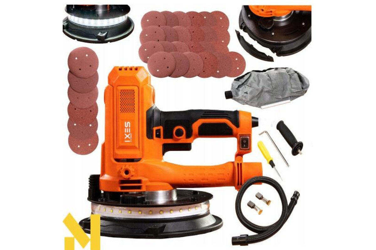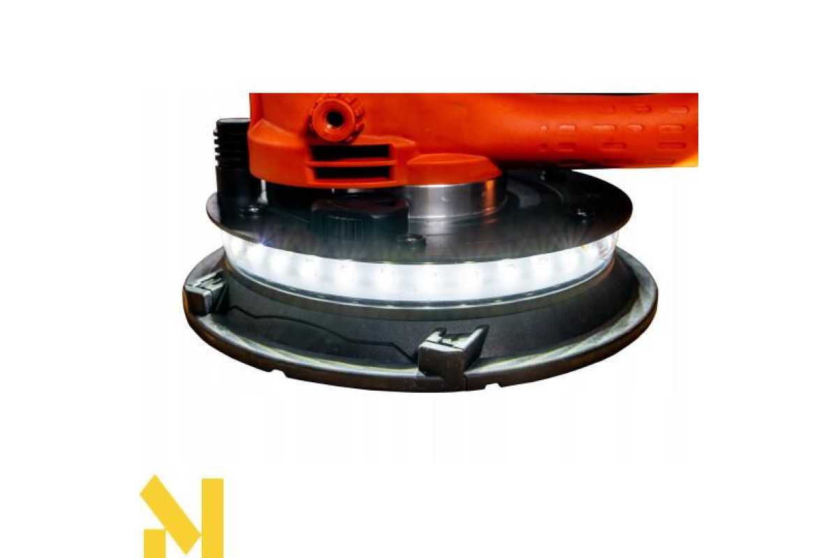 Додаткова інформація: нековзна ручка, заміна дисків без інструментів, світлодіодне підсвічування, регулювання швидкості, система видалення пилу, пилозбірник в комплекті, захист при включенні, змінні диски в комплекті.