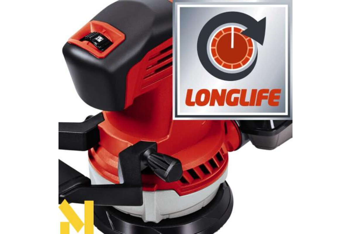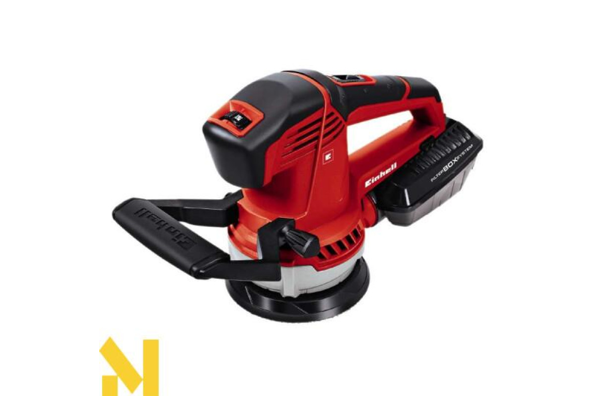 Ексцентрикова шліфмашина Einhell TE-RS 40 E - мережева ексцентрикова шліфувальна машина для проведення шліфувальних робіт по дереву, пластику, металу та інших матеріалів. Як оснащення ексцентрикова машина для шліфувальних робіт Einhell TE-RS 40 E використовує круглі абразивні шліфувальні круги діаметром 125 мм, з перфорацією, з кріпленням на липучці Velcro. Ця модель оснащена електронікою для регулювання швидкості обертання, яка визначає потужність шліфування залежно від типу оброблюваного матеріалу. Комплектація: шліфмашина пилозбірник (вбудований)