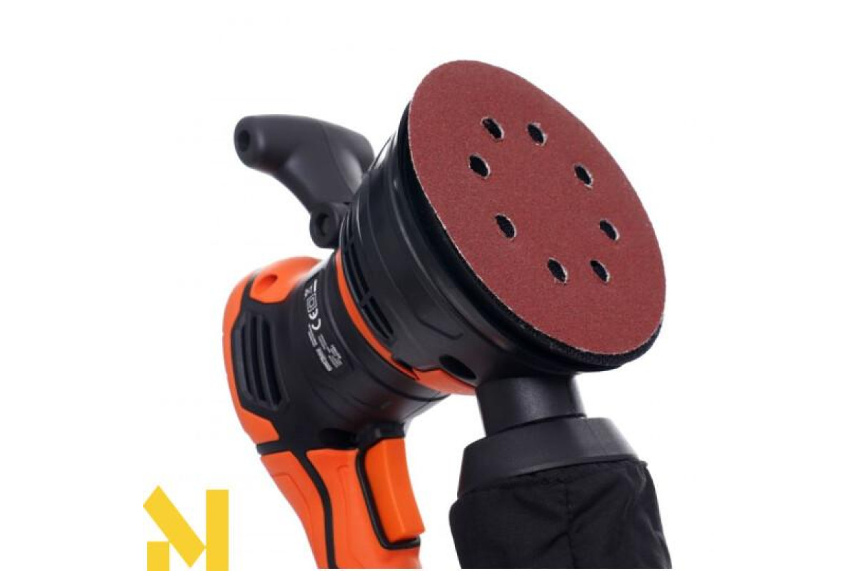 Наждачний папір замінюється вручну, диски кріпляться на липучках. У набір також входить мішок для пилу, щоб ваша робота була чистою.