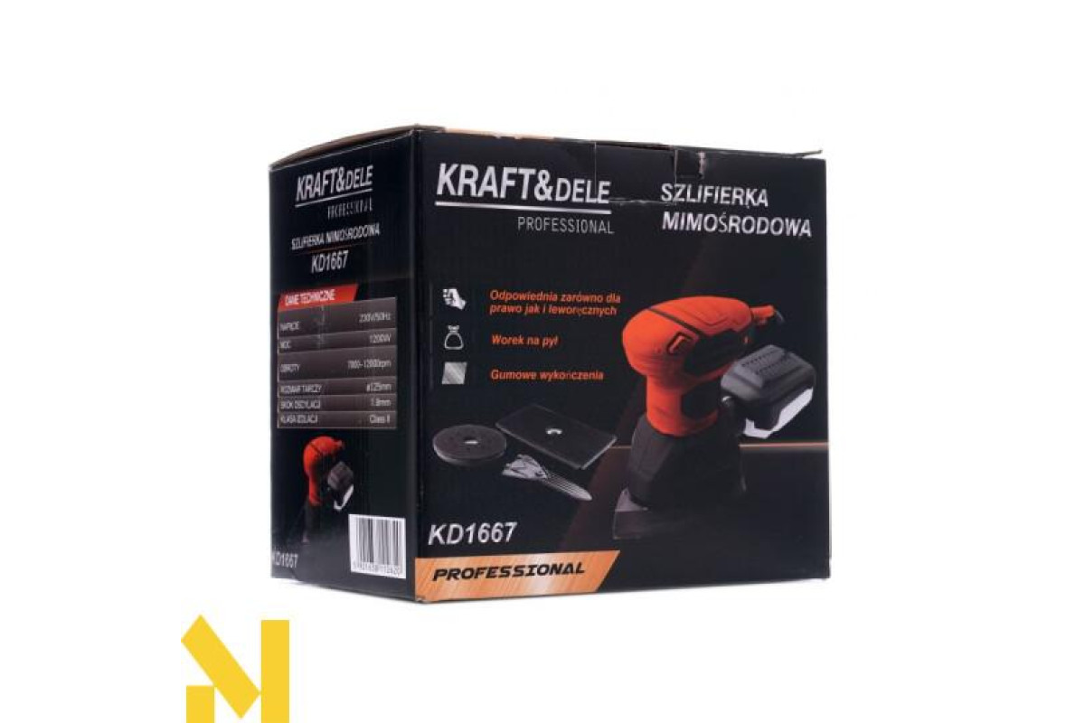 Ексцентрикова шліфувальна машина KD1667 від польської компанії Kraft&Dele дозволяє, крім іншого, шліфувати та полірувати поверхні. Пристосована для роботи з деревом, металом, гіпсом і пластиком.