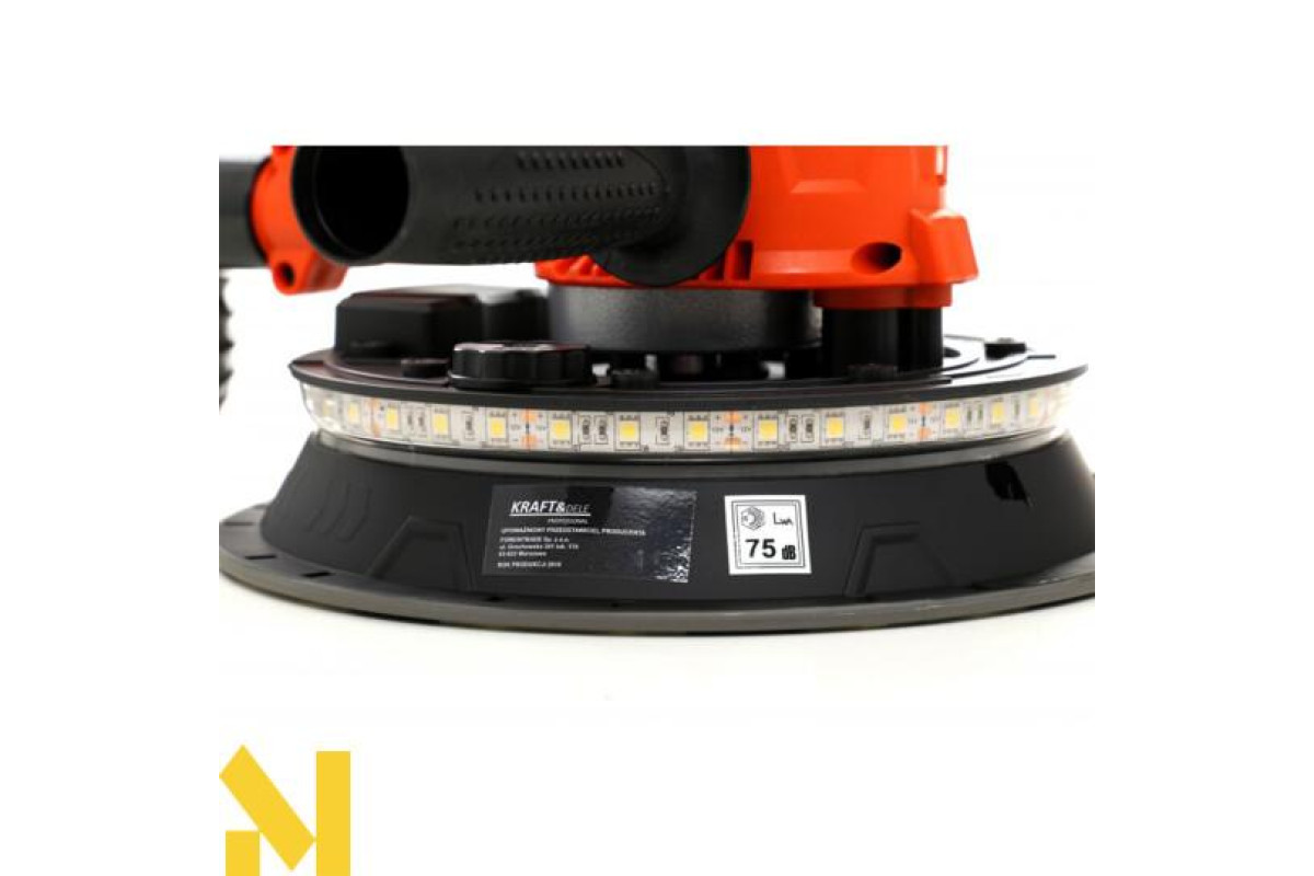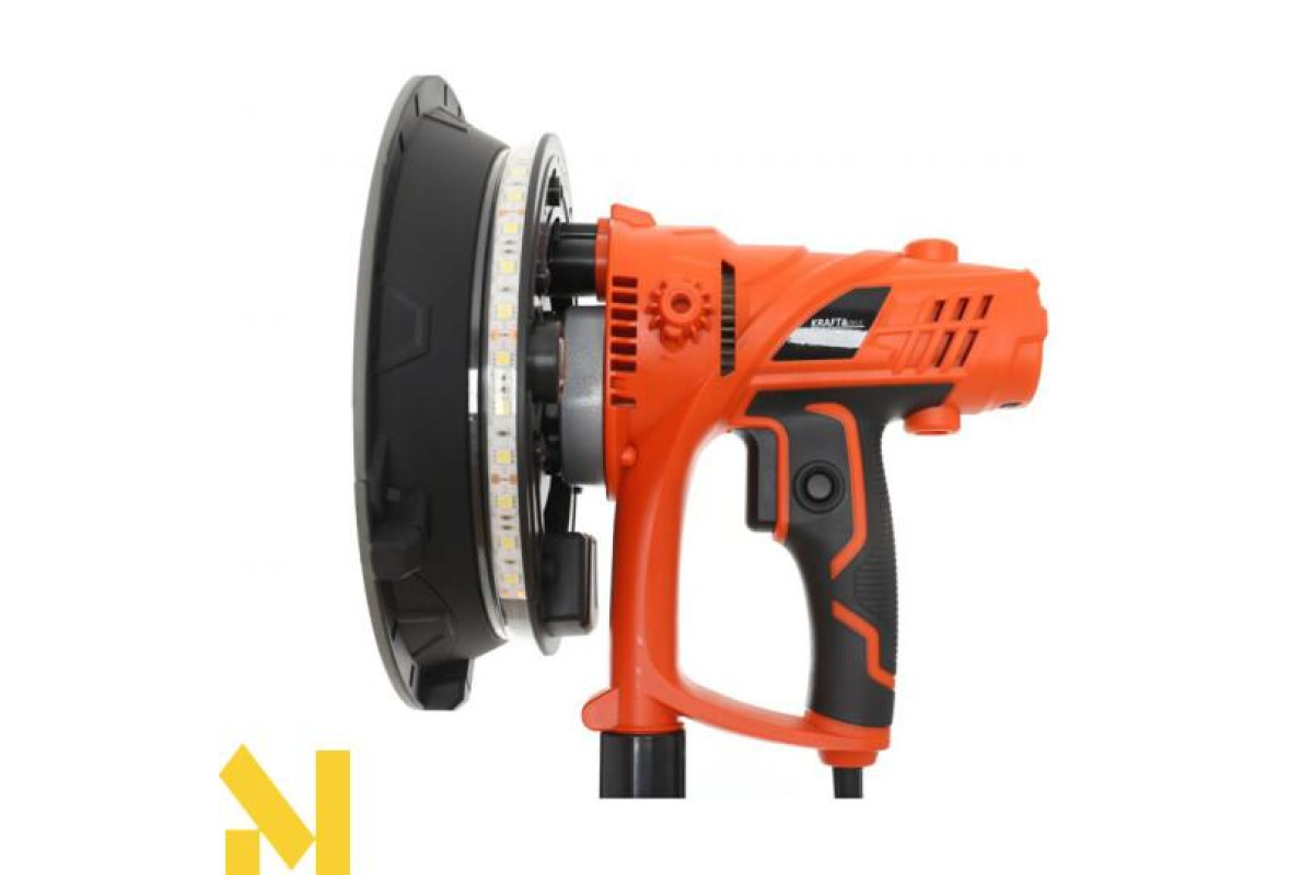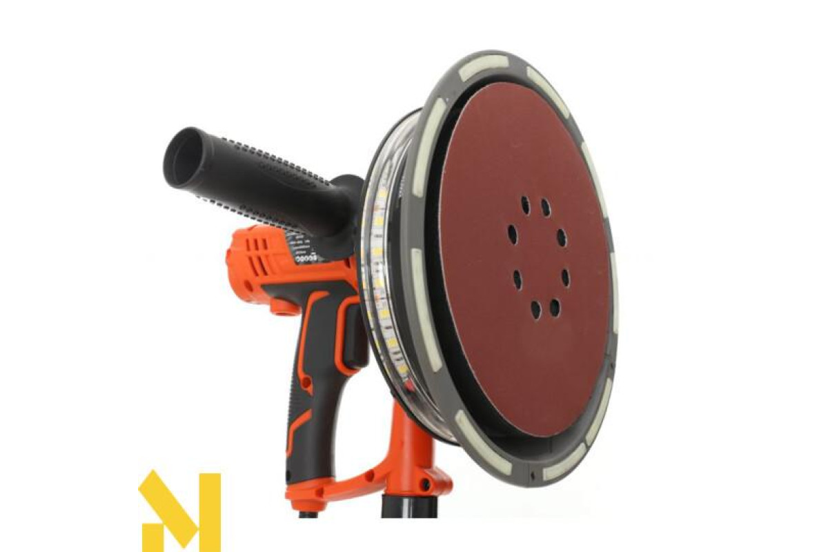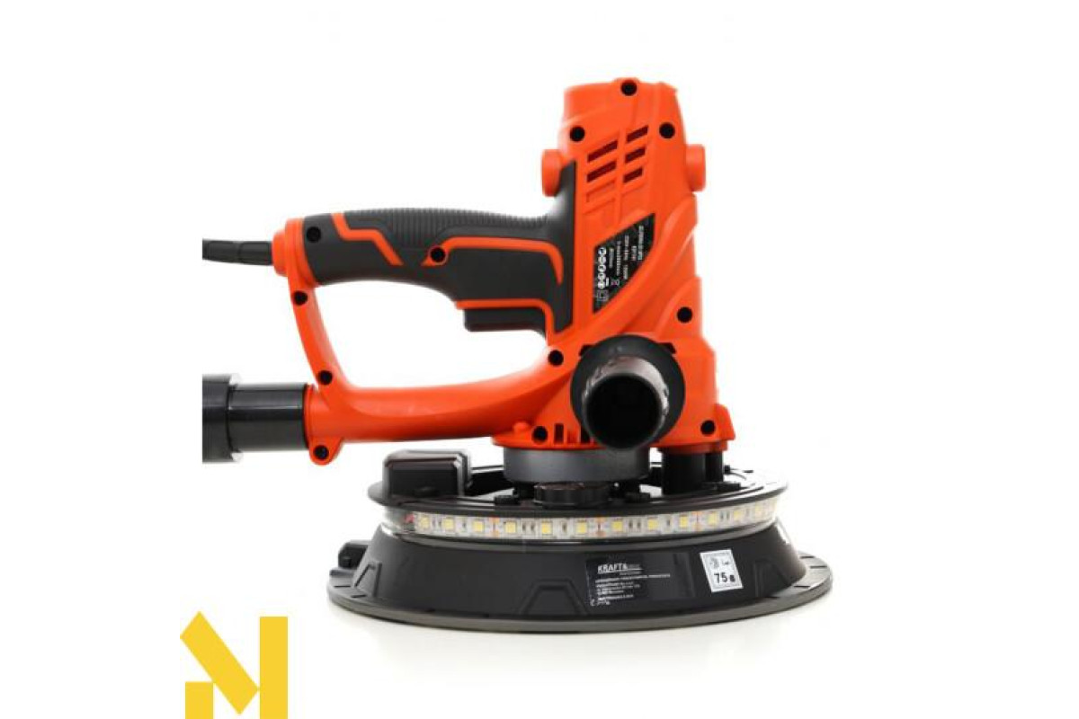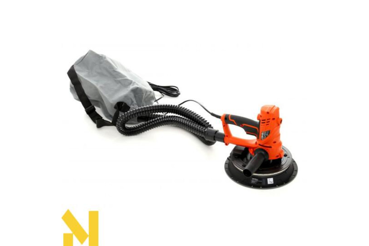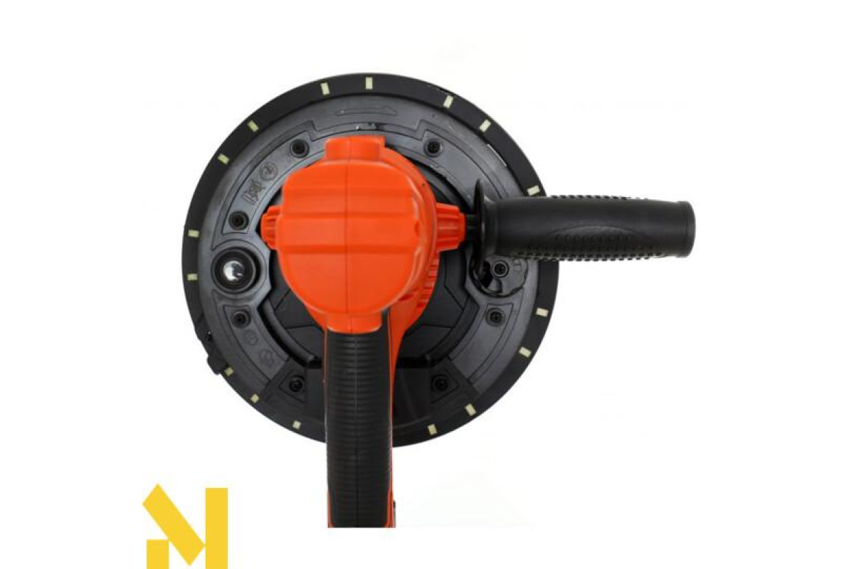 Пристрій призначений для шліфування штукатурки та гіпсокартону. Коротка рукоятка та додаткова рукоятка забезпечують надійний захват і точне керування інструментом. Привід від двигуна передається безпосередньо через редуктор - конструкція проста і надійна.