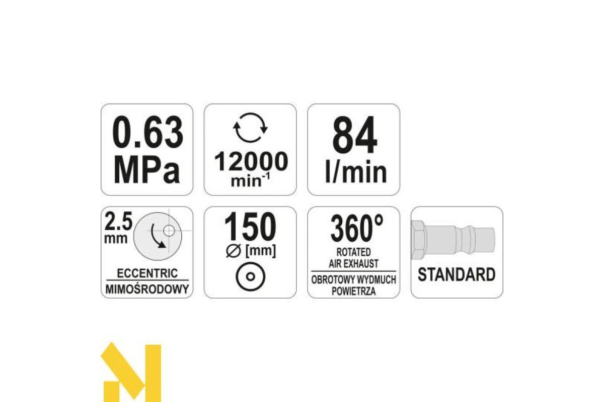 Ексцентрикова пневматична шліфувальна машина YATO YT-09739 живиться від струменя стисненого повітря під тиском.