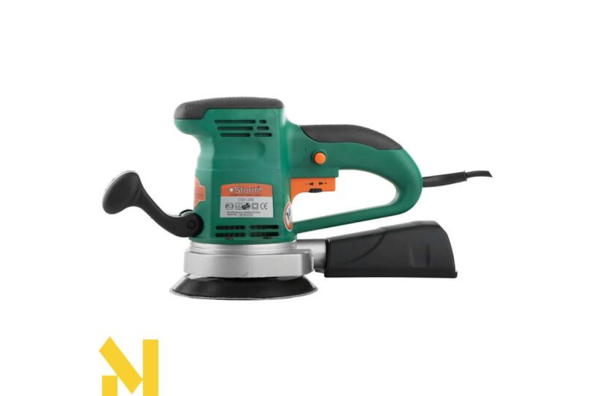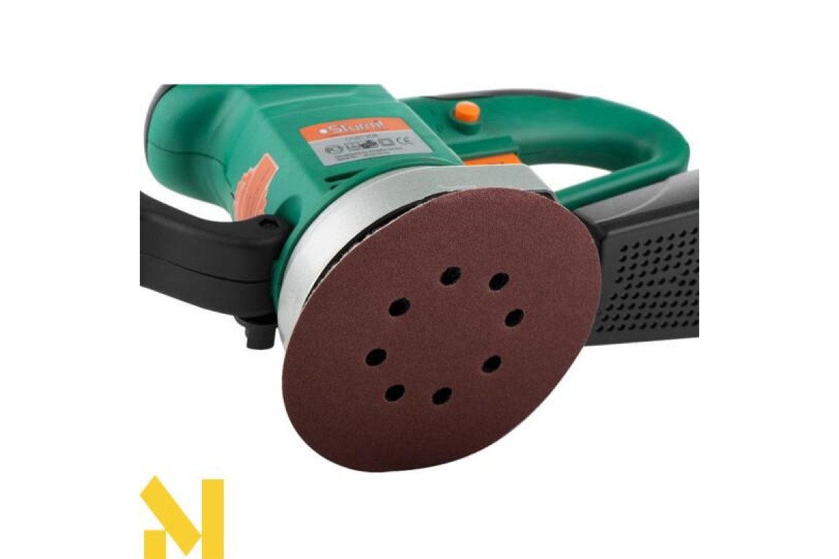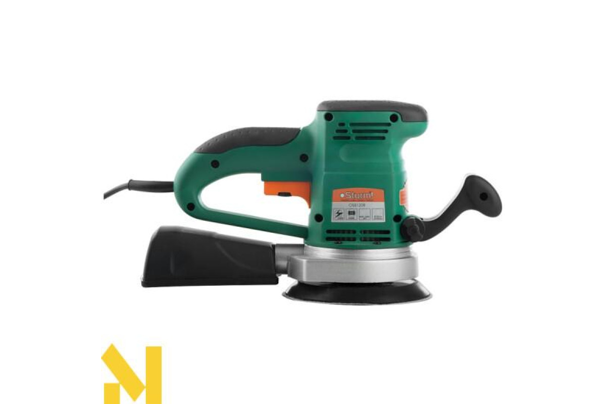У шліфувальні машини Sturm OS8120R встановлений двигун потужністю 450 Вт. Ексцентриситет руху тарілки 1,35 мм. Надійність інструменту підвищена застосуванням алюмінієвих опорних фланців підшипників.