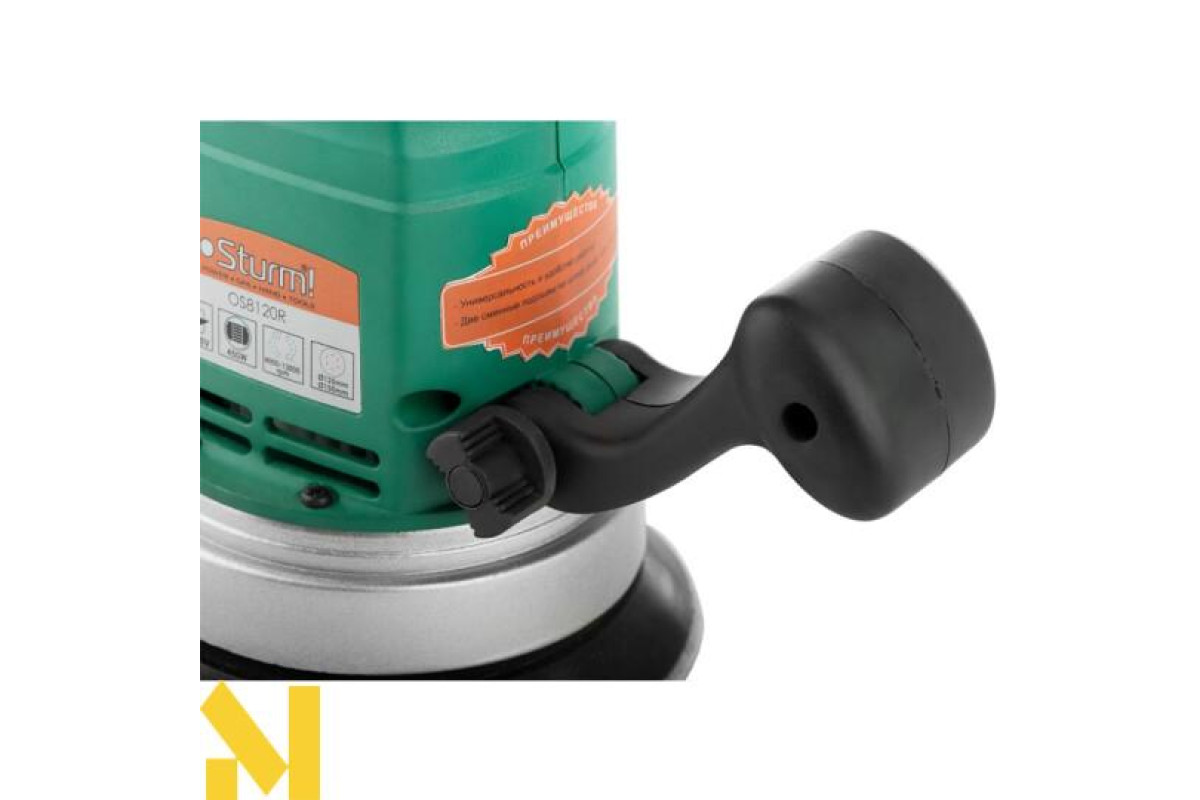 Система відведення пилу шліфувальні машини Sturm OS8120R забезпечує підтримання чистоти на робочому місці, при необхідності передбачено підключення порохотягу. При тривалій безперервній роботі використовується система блокування вимикача.