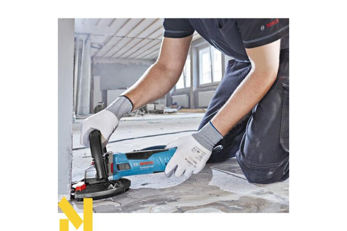 Шліфмашина по бетону Bosch GBR 15 CAG потужністю 1500 Вт, належить до професійної лінійки. Застосовується для шліфувальних робіт бетонної кладки, також дає змогу виконувати роботу поблизу до краю - це можливо завдяки рухомому елементу кожуха.