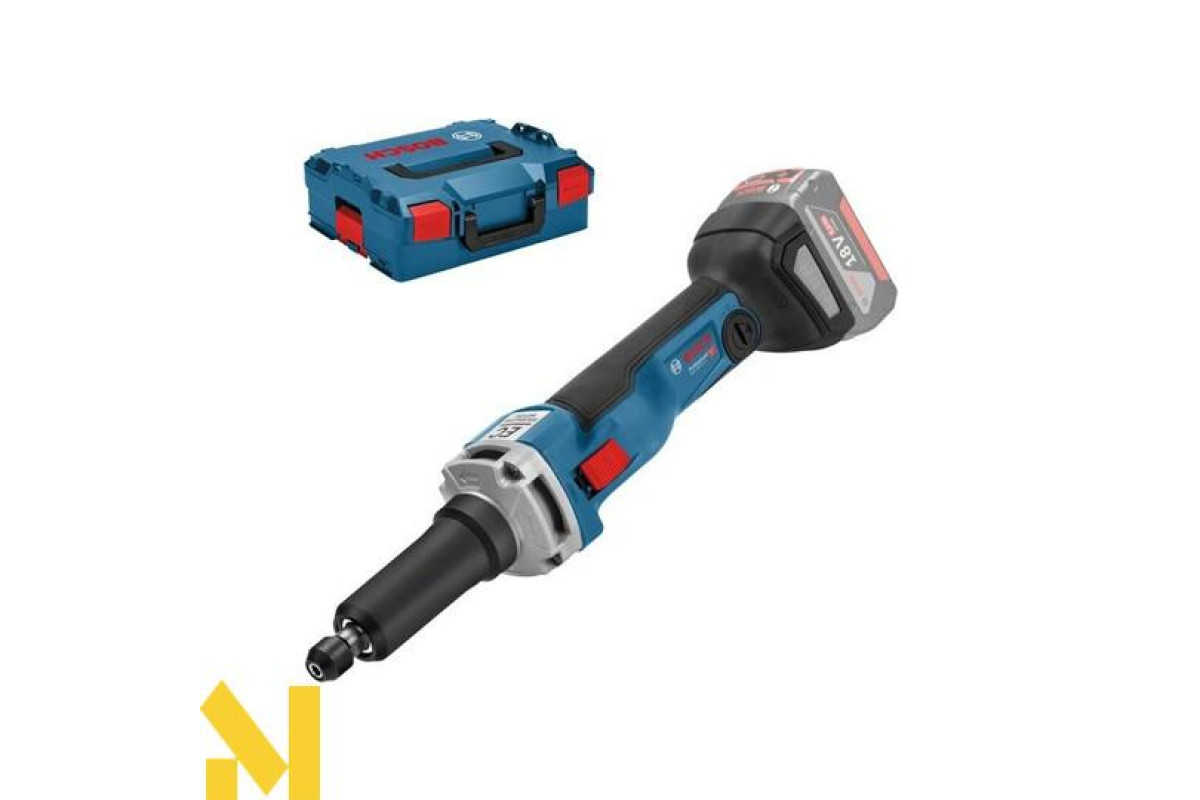 Акумуляторна пряма шліфмашина BOSCH GGS 18V-23 LC Professional - самий потужний ручний шліфувальний бездротовий аккмуляторний від Bosch з цанговим затискачем 8 мм, що забезпечує особливо точне обертання шпинделя з оснащенням. Акумуляторна шліфмашина BOSCH GGS 18V-23 LC Professional має практичну компактну і ергономічну форму для зручного виконання шліфувальних робіт. Безпека роботи з шліфмашиною BOSCH GGS 18V-23 LC Professional забезпечує захист від перегріву, від перевантаження аккмуляторів і двигуна, від глибокого розряду. У шліфувальні машини BOSCH GGS 18V-23 LC Professional потужний і надійний 4-полюсний двигун.