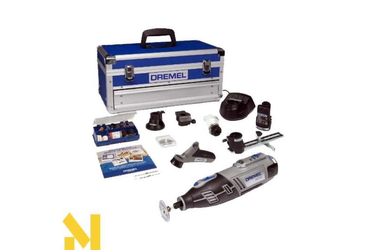 - Кейс. Dremel 8200 це найпотужніший , бездротової багатофункціональний інструмент для найвимогливіших домашніх майстрів ; Особливо для виконання робіт , що вимагають максимальної продуктивності , таких як різання і шліфування по різних матеріалами як у будинку , так і на вулиці ; Завдяки новій функції EZ Twist Nose Cap більше не потрібен ключ для затягування і ослаблення цанги при зміні насадок - механізм ключа вбудований в наконечник інструменту; 8200 оснащений літій -іонним акумулятором 10.8 В з технологією ECP і 1 -годинним швидкозарядний пристроєм; Завдяки компактному та ефективному електромотору ви можете виконувати будь-які проекти з підвищеним комфортом і ефективністю ; 3 - мініатюрних світлодіодних індикатора заряду для контролю заряду акумулятора; Кнопки вимикач і блокування шпинделя відокремлені , що запобігає випадкову активацію стопора ; За допомогою повзунка - перемикача ви можете повністю контролювати швидкість обертів до 30 000 об / хв;Ручка з м'якою накладкою гарантує комфортну і тривалу роботу ; Компактний і потужний літій -іонний акумулятор 10.8 В з часом зарядки 1 годину;Потужний електродвигун ; Гальмо двигуна миттєво зупиняє обертання насадки.