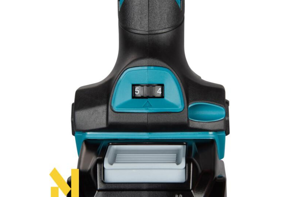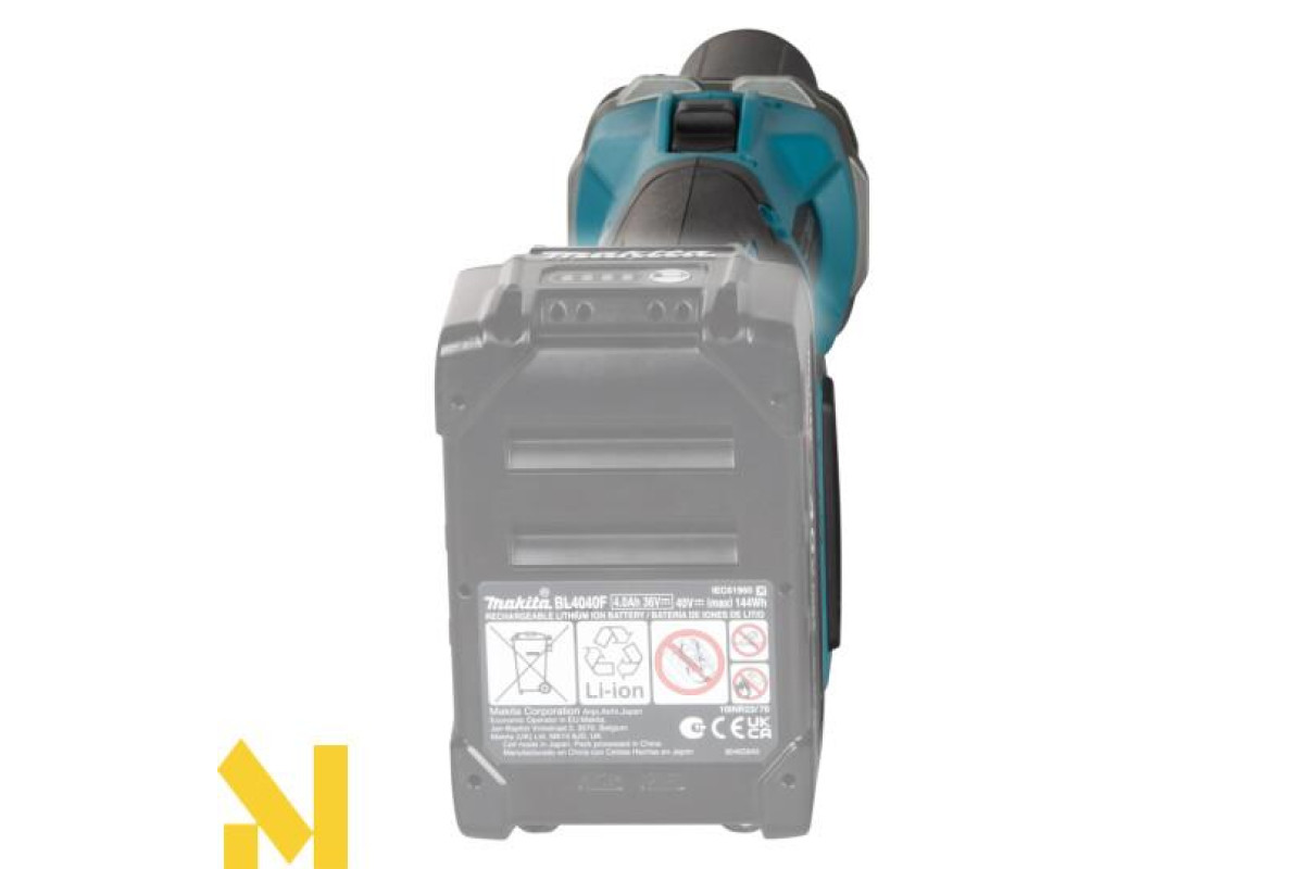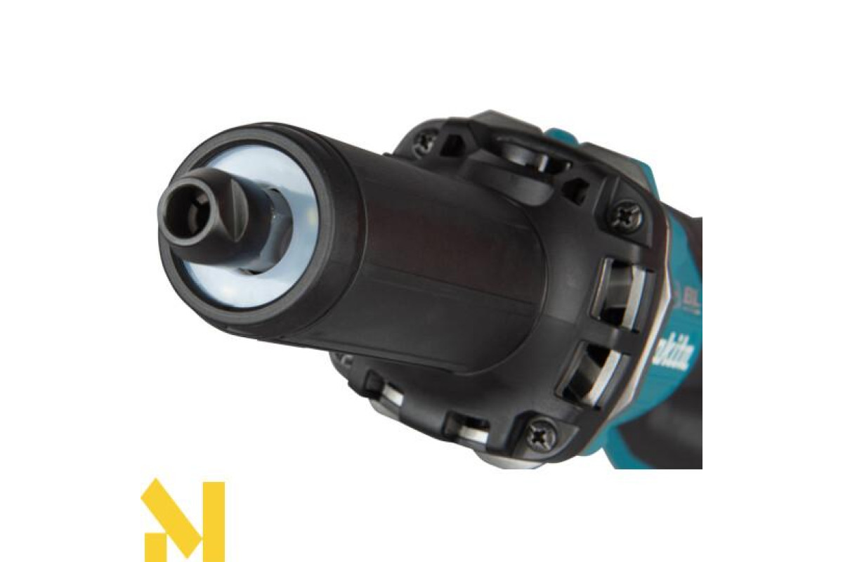 Він оснащений повзунковим перемикачем, який можна заблокувати для безперервної роботи. Функція антиперезапуску запобігає випадковому запуску. Три світлодіоди, що активуються ручкою регулювання, освітлюють робочу зону.