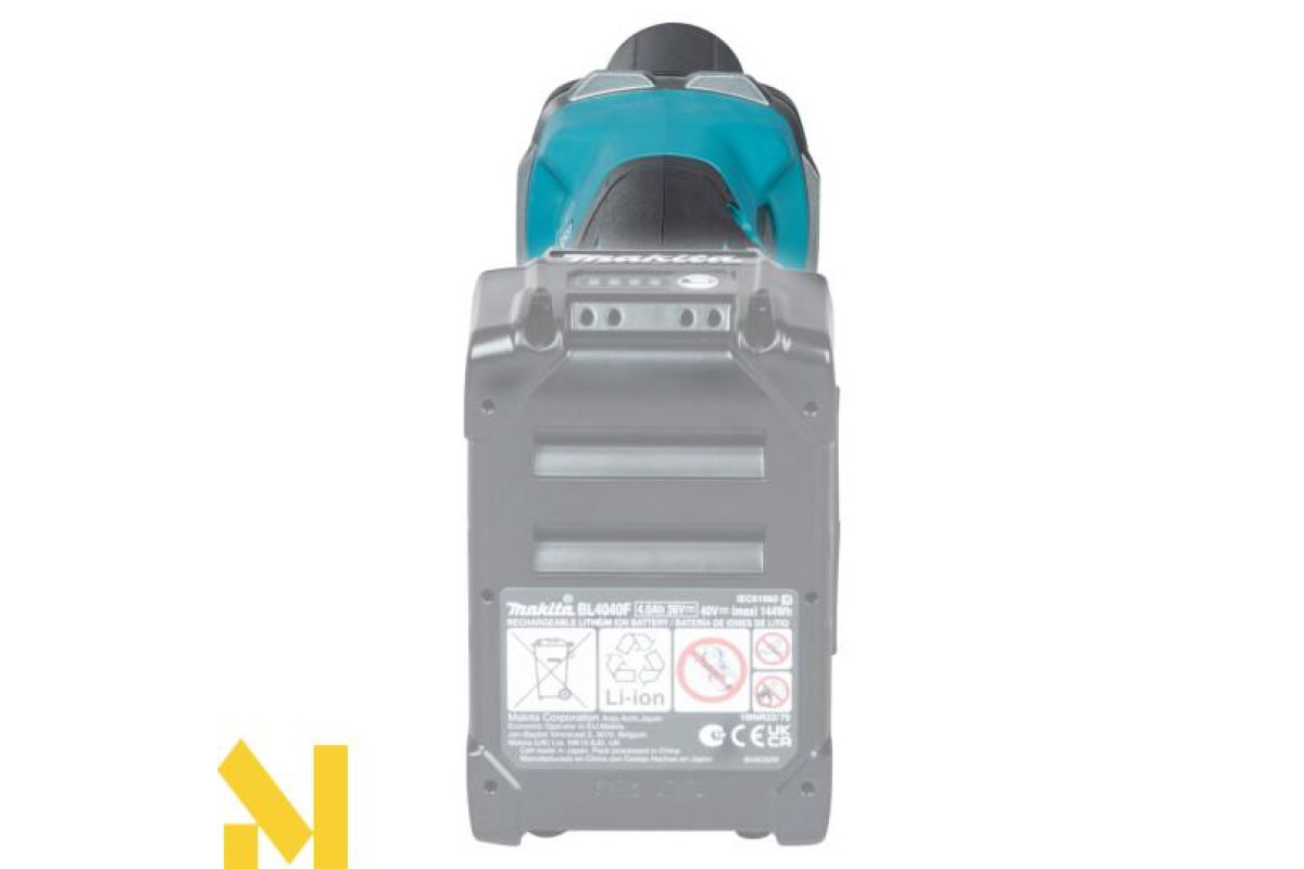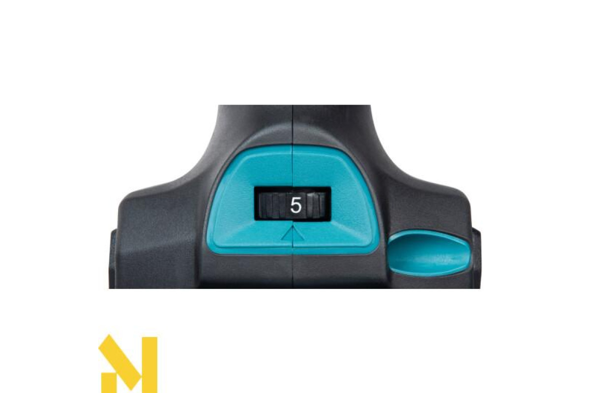 Обладнаний перемикачем-лопаткою. Функція антиперезапуску запобігає випадковому запуску. Три світлодіоди, що активуються за допомогою ручки регулювання, освітлюють робочу зону.