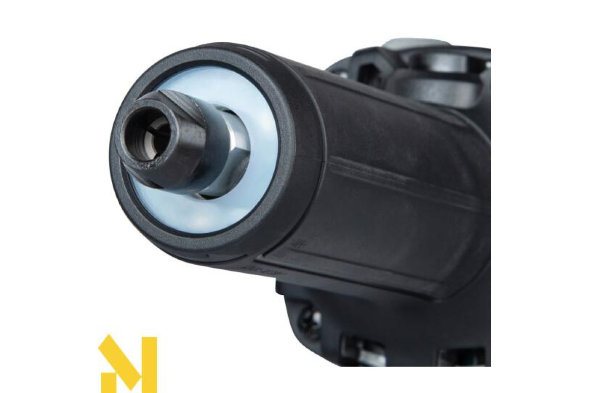 Зручний корпус малого діаметра забезпечує надійний хват завдяки протиковзкому покриттю. Вентиляційні отвори спрямовують відпрацьоване повітря від оператора. Він оснащений електричним гальмом і плавним пуском.
