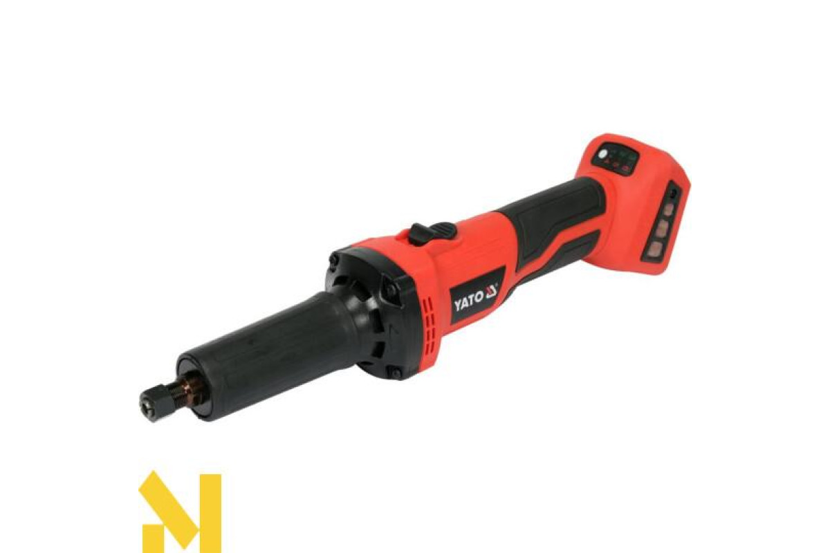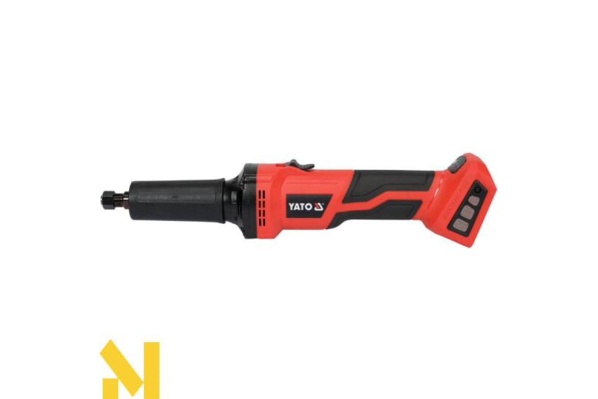 Пряма шліфувальна машина YATO YT-82824 призначена для роботи по металу. Він буде використовуватися в кузовних, фарбувальних та шиномонтажних майстернях, а також для зняття задирок з кромок труб та зняття фасок з металевих кромок. Працює з кінцевими фрезами, наприклад, YT-61729, YT-6171. Живлення забезпечується безщітковим двигуном. Плавний запуск продовжує термін служби коробки. До комплекту входить ключ для кріплення аксесуарів.