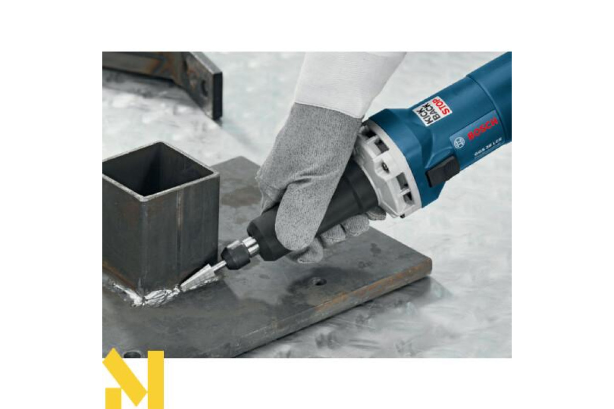 Пряма шліфмашина BoschGGS 28 LCE, для збільшення власної довговічності, захищена від пилу. Зокрема, кулькові підшипники мають подвійний ущільнювач. Вібрації гасять резинові вставки на корпусі.