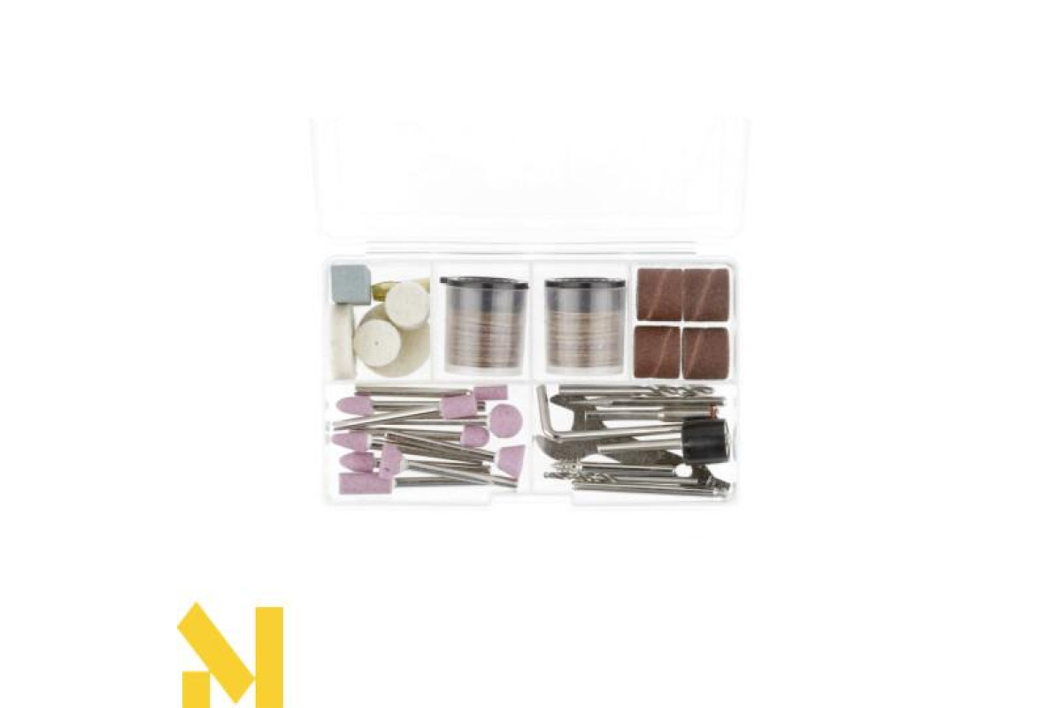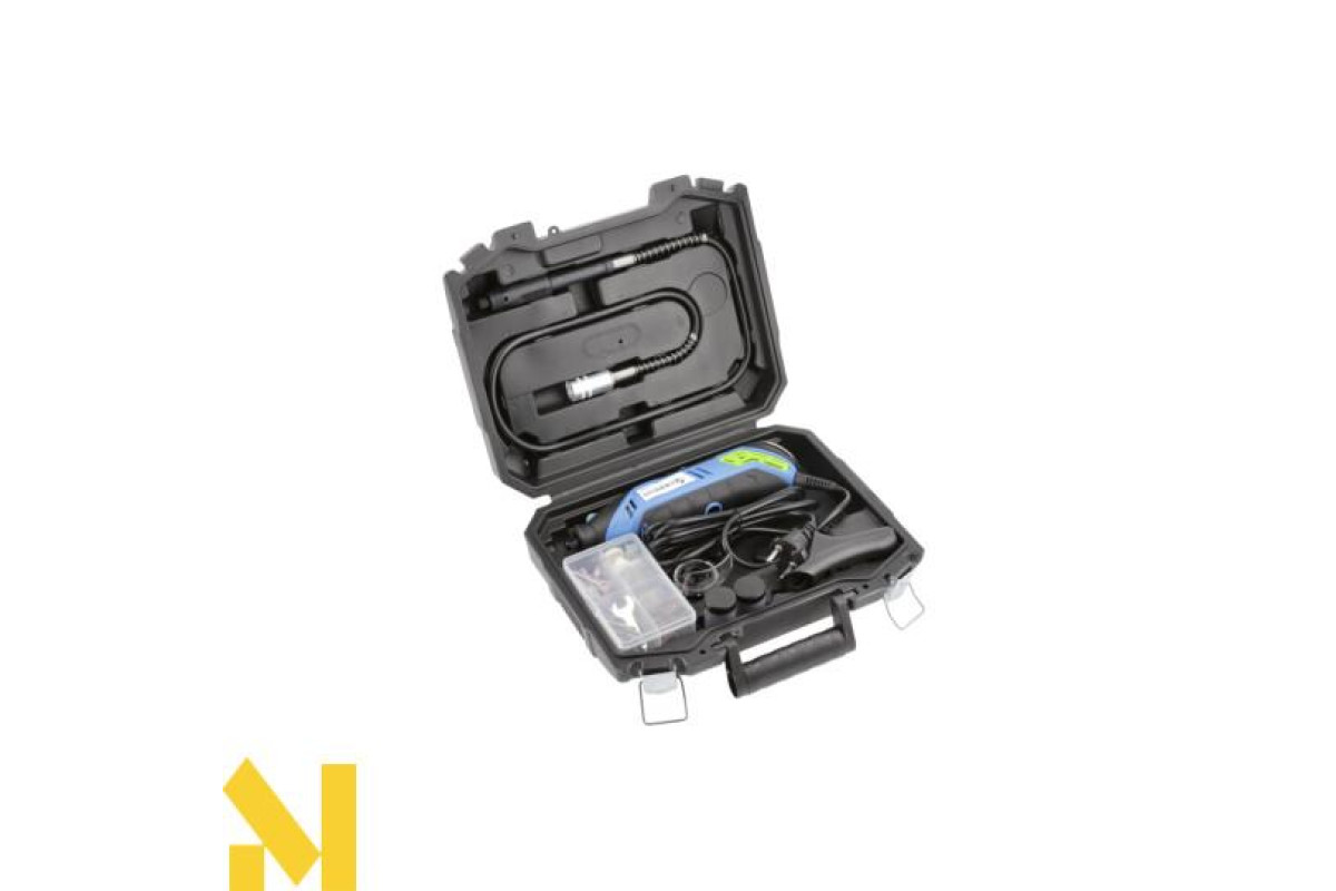 184 додаткових аксесуарів(гнучкий подовжувальний вал, ручка та кришка, а також безліч дисків, абразивні та полірувальні диски тощо.)