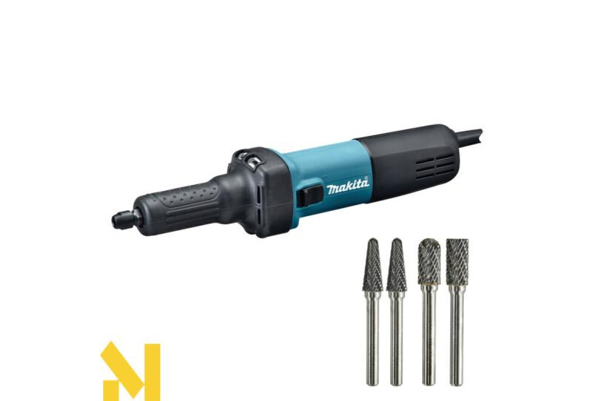 Набір пряма шліфувальна машина Makita GD0601 + тверд. фрези B-52819x2, B-52750, B-52722 (SET-GD0601-0425) має такі особливості: