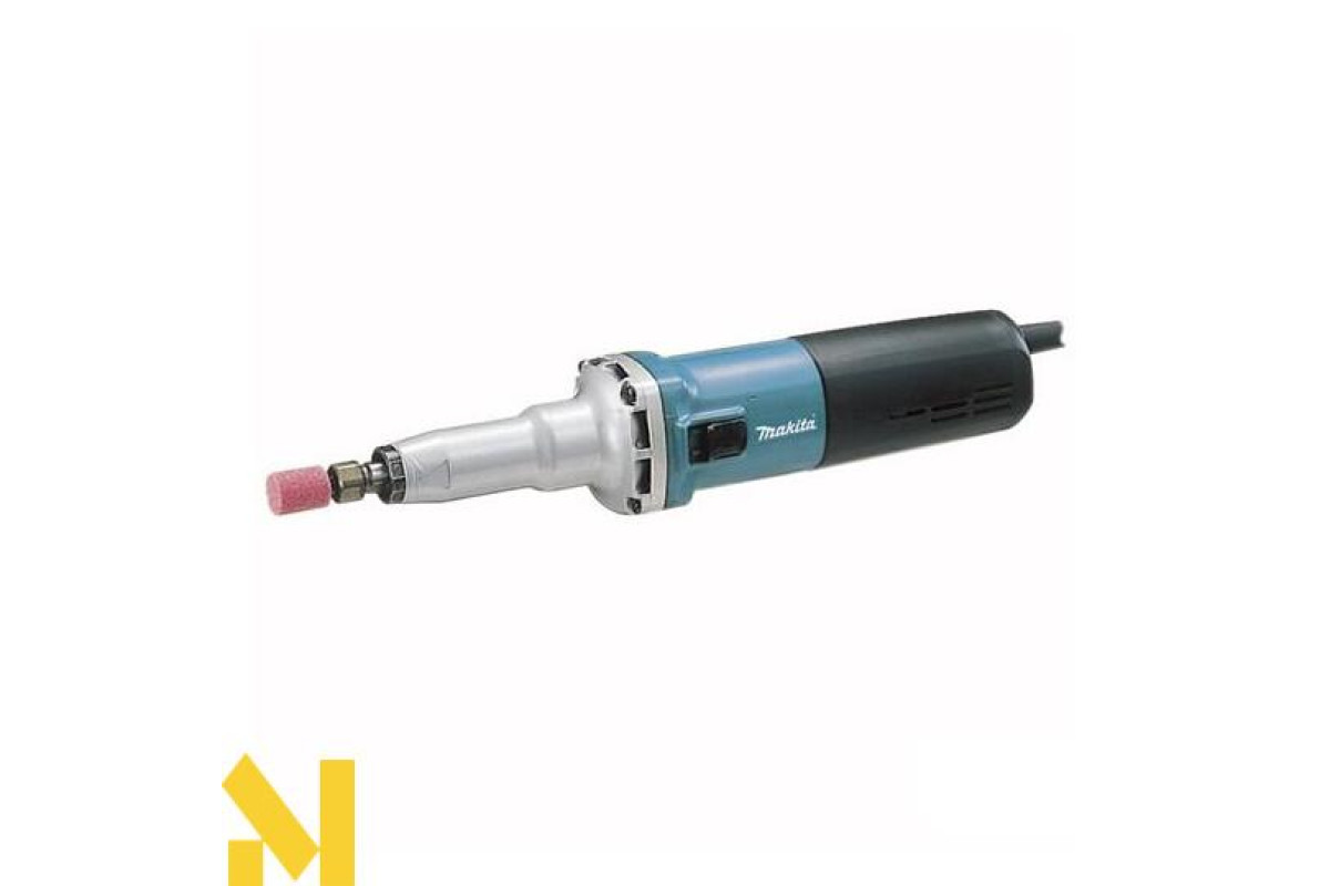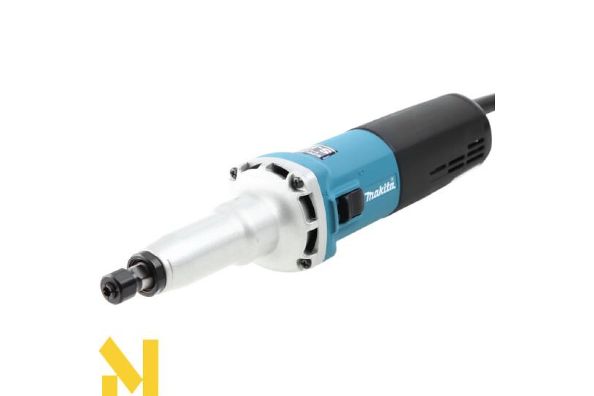 Пряма шліфмашина Makita GD0800C з легкістю впорається з зачисткою, шліфуванням і поліруванням різних поверхонь в складнодосяжних місцях. Досягти цього вдалося, завдяки порівняно малій вазі інструменту, 1,6 кг, і довгому корпусу зі шпинделем, захованому в надійний алюмінієвий кожух. Затискні цанги, діаметром 6 мм, дозволяють міцно фіксувати робочі насадки. Звертаємо вашу увагу на високий крутний момент запропонованої моделі. Він становить 28000 обертів за хвилину.