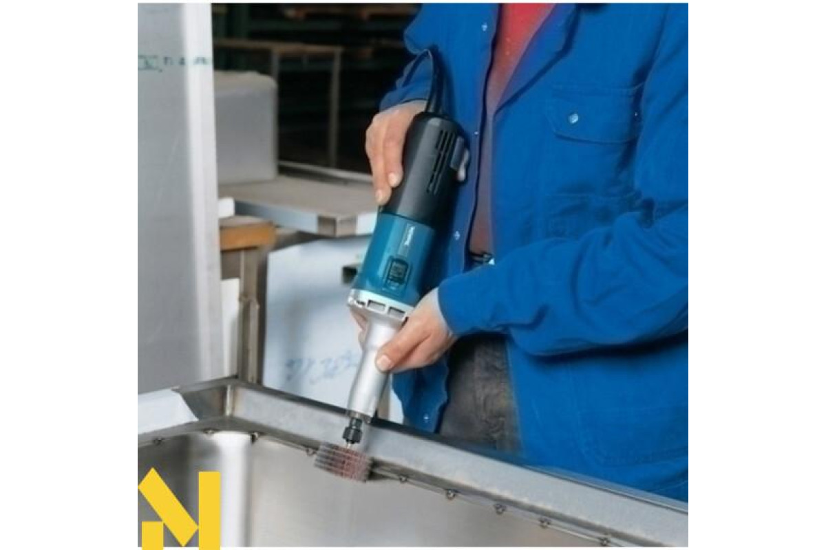Пряма шліфмашина Makita GD0810C має електронне коригування кількості обертів. Передбачене і самовідключення вугільних щіток. Крім того, їх заміна не вимагає додаткових інструментів. Якщо мотор двигуна перегрівся, щітки миттєво відключаються. У цій моделі є блокування кнопки пуску. Завдяки цьому, стомлюваність оператора істотно зменшується.