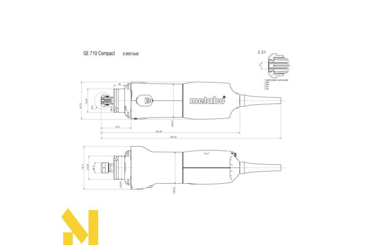 - Висока точність роботи Metabo GE 710 Compact забезпечується високоякісним шліфонним цанговим затискачем
