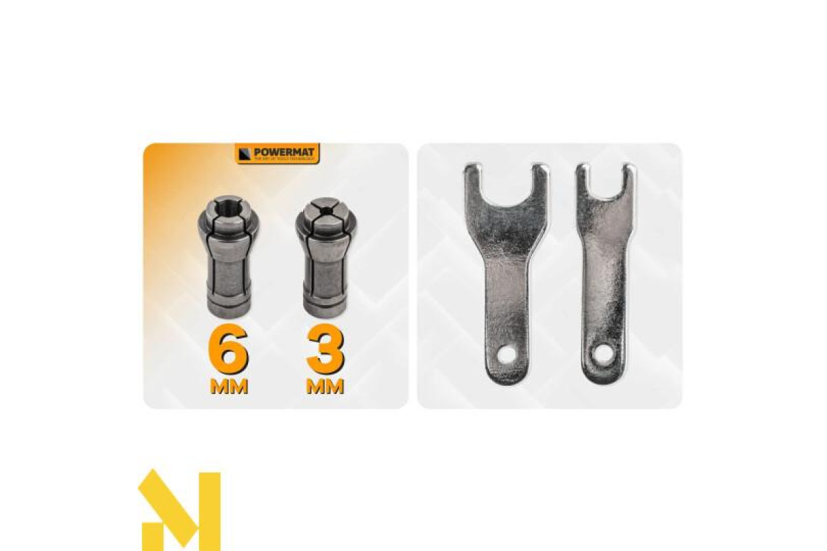 Оснащена двома цангами діаметром, шліфувальна машина сумісна з більшістю насадок, доступних на ринку.