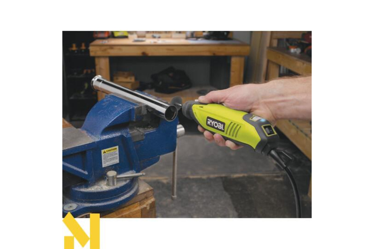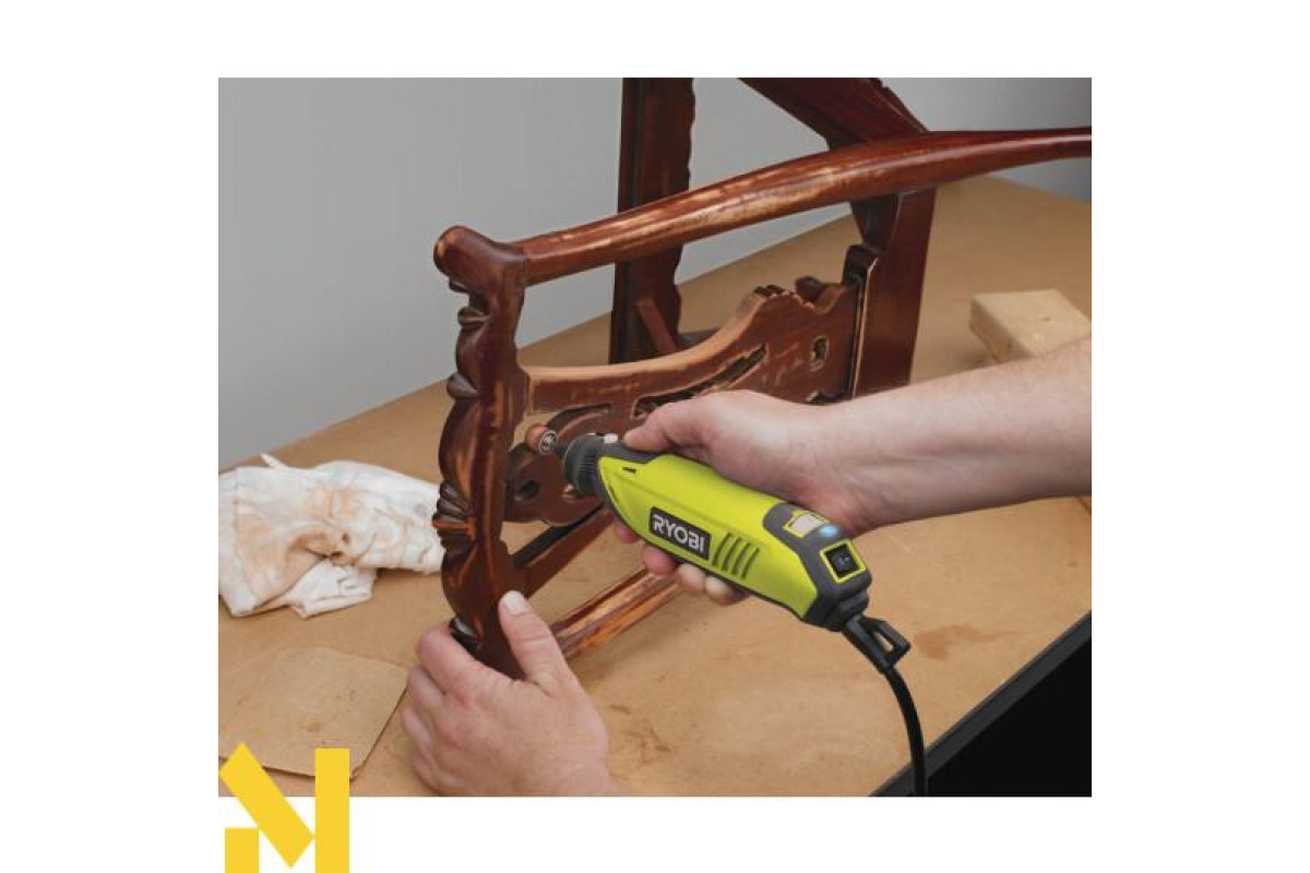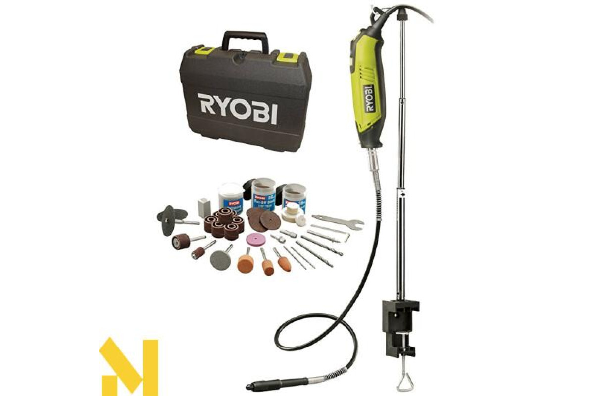 Пряма шліфмашина з набором шкільного приладдя Ryobi EHT150V зуміє залучити до себе увагу, завдяки ергономічному дизайну, високій якості виконання і хорошим технічним характеристикам. У Ryobi EHT150V встановлений надійний двигун, потужністю 150 Вт, є можливість регулювання швидкості в межах 15000-35000 об/хв, що необхідно для контролю виконуваних завдань, дозволяючи виконувати роботу з максимальною точністю, функція блокування шпинделя, необхідна для швидкої заміни приладдя, а також індикатор мережевого включення. Варто звернути увагу на затискні цанги 3,2 і 1,6 мм, його відносно невелику вагу 0,58 і низький рівень вібрації в процесі роботи. До переваг Ryobi EHT150V можна також віднести комплектацію, що включає 115 різних приналежностей, в тому числі гнучкий вал 2 м, стійку для кріплення до столу і кейс для зберігання.