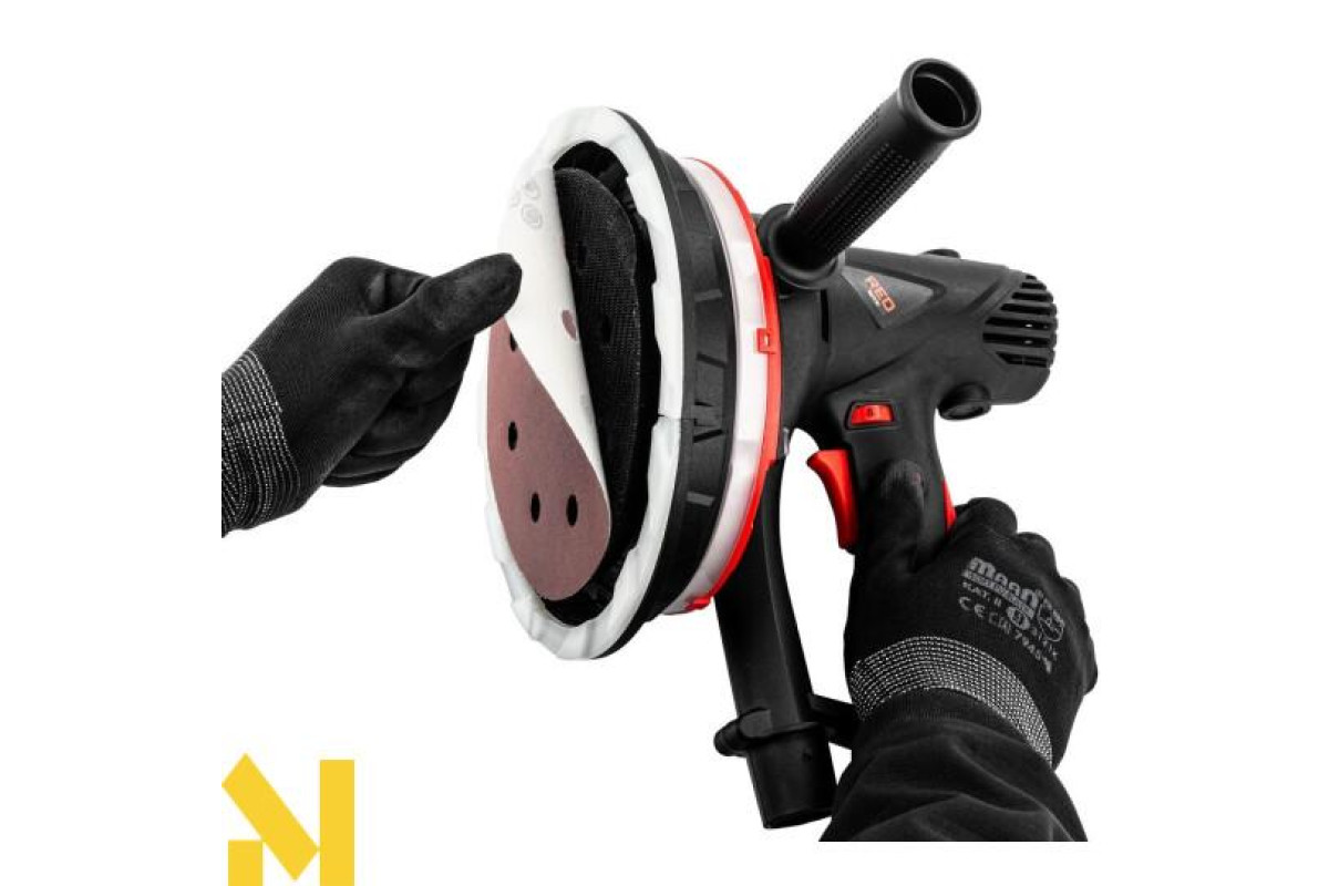 Знімна частина кришки диска на штукатурній шліфувальній машині дозволяє зручно шліфувати кути, наприклад, місця з'єднання стін і стелі. Це дозволяє точно обробити важкодоступні місця, роблячи оздоблювальні роботи швидше і легше.
