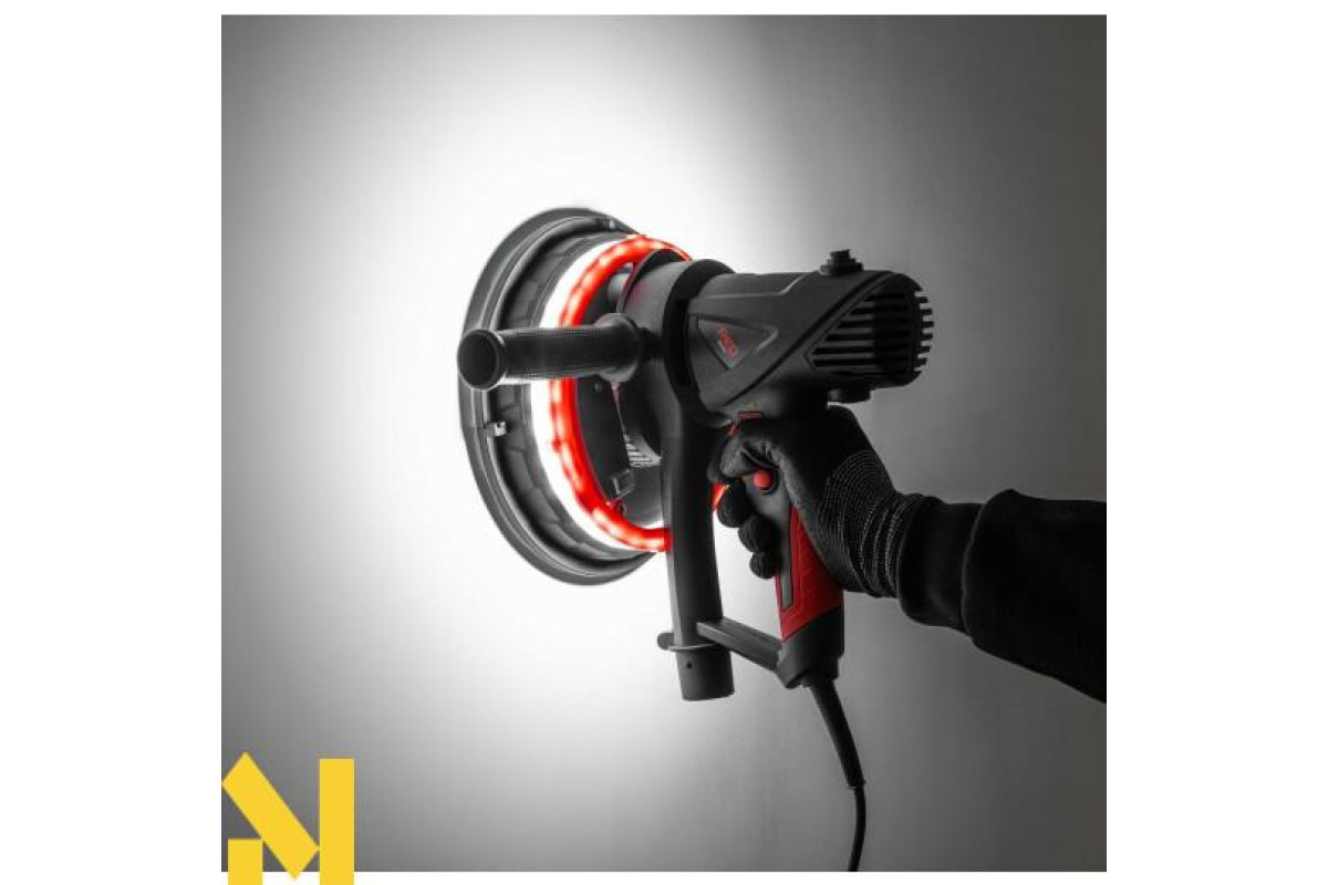 Пристрій має світлодіодне підсвічування 360° навколо циферблата, тому немає необхідності використовувати додаткові галогенні лампи для освітлення стіни. Робоча зона підсвічується саме там, де ми зараз шліфуємо, що робить роботу точнішою і легше досягає бажаного ефекту.