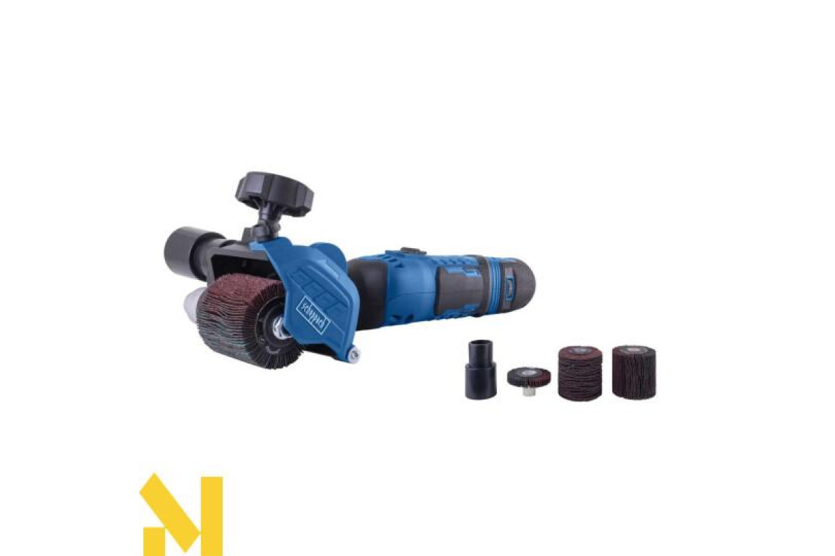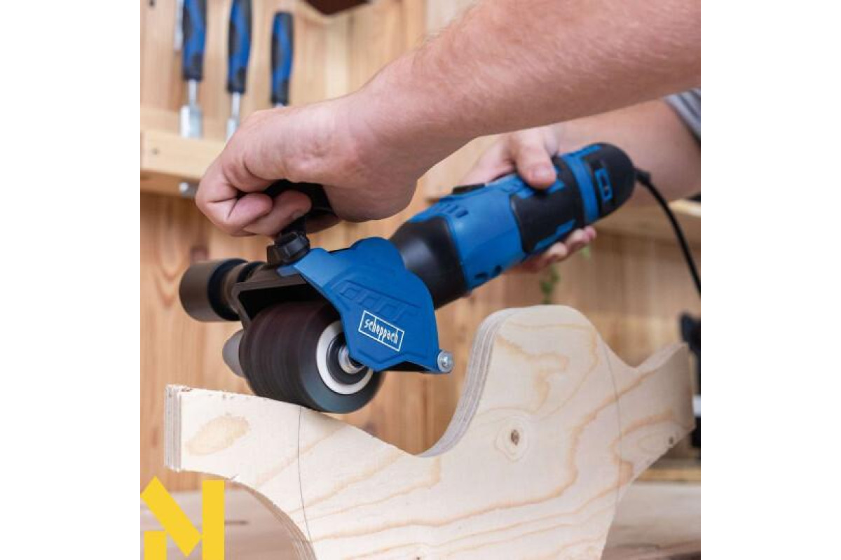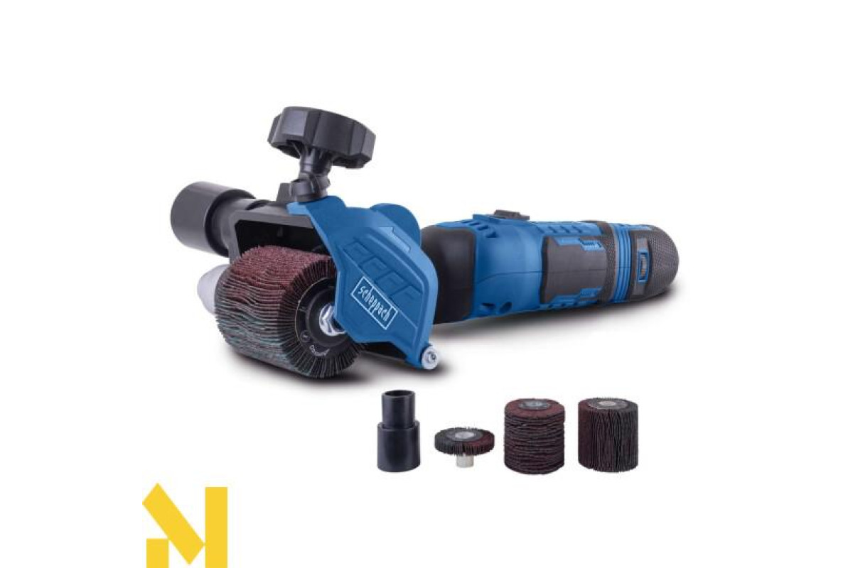 Універсальна шліфувальна машина для ремонту Scheppach MRS500 легко впорається майже з будь-якою дерев'яною або металевою поверхнею. Вона може дістатися навіть до важкодоступних місць та шліфувати ніжки столу, профільовані плінтуси, балки, перила або навіть більші поверхні, такі як гаражні ворота або балки перекриття. Завдяки регульованій швидкості від 1600 до 3200 обертів на хвилину, MRS500 підходить для обробки широкого спектру матеріалів та застосувань. Система Auto-Lock також дозволяє швидко та легко змінювати шліфувальні втулки. Додаткові насадки-щітки для різних потреб доступні окремо.